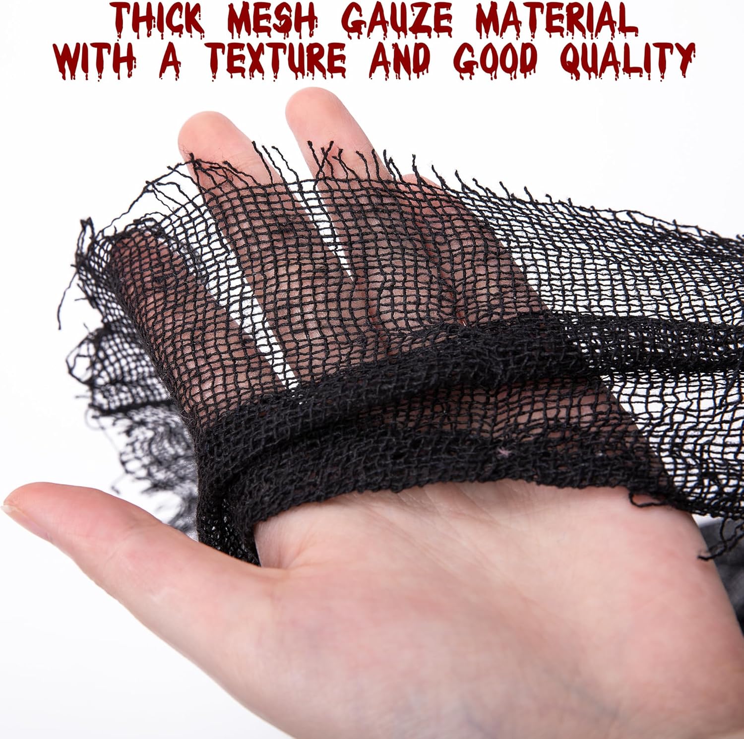 - Application Scenarios: You can use the creepy gauze to decorate doors, window, bathrooms, porches and walls when holding Halloween parties, midnight thriller challenge activities, etc.