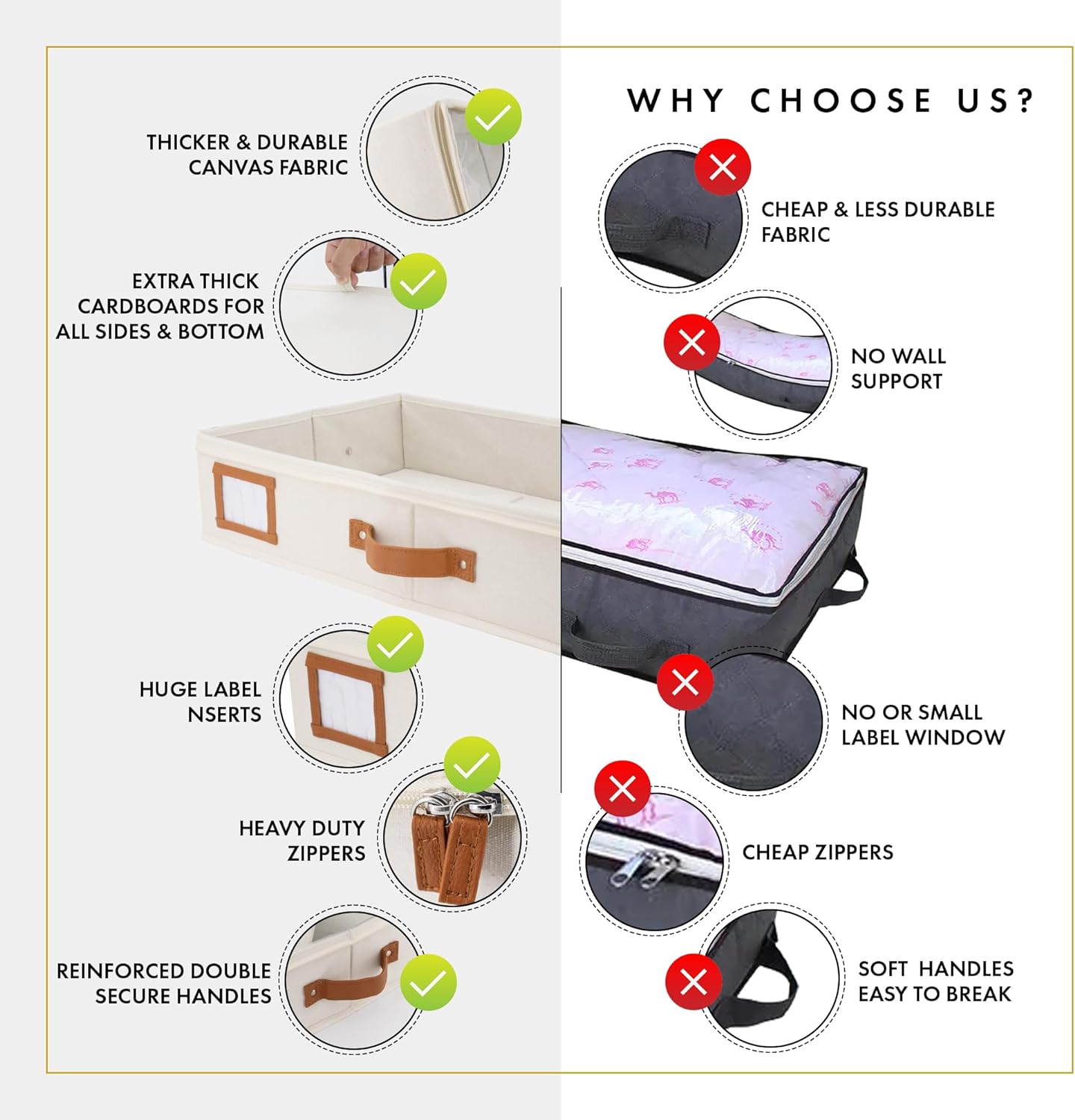 - ๐๐ฑ๐ญ๐ซ๐ ๐๐ก๐ข๐๐ค ๐๐ญ๐ฎ๐ซ๐๐ฒ ๐๐๐ซ๐๐๐จ๐๐ซ๐๐ฌ: Unlike most under bed storage box, Homelux Theory's under the bed storage containers come with extra thick cardboard on each side and bottom part to help hold their shapes and withstand frequent use & heavy loads. While other under box for clothes and shoe organizer under bed storage in the market usually has flimsy sides made of thin, lightweight materials, our timeless storage boxes for under bed are crafted for long-term durability and reliable performance.