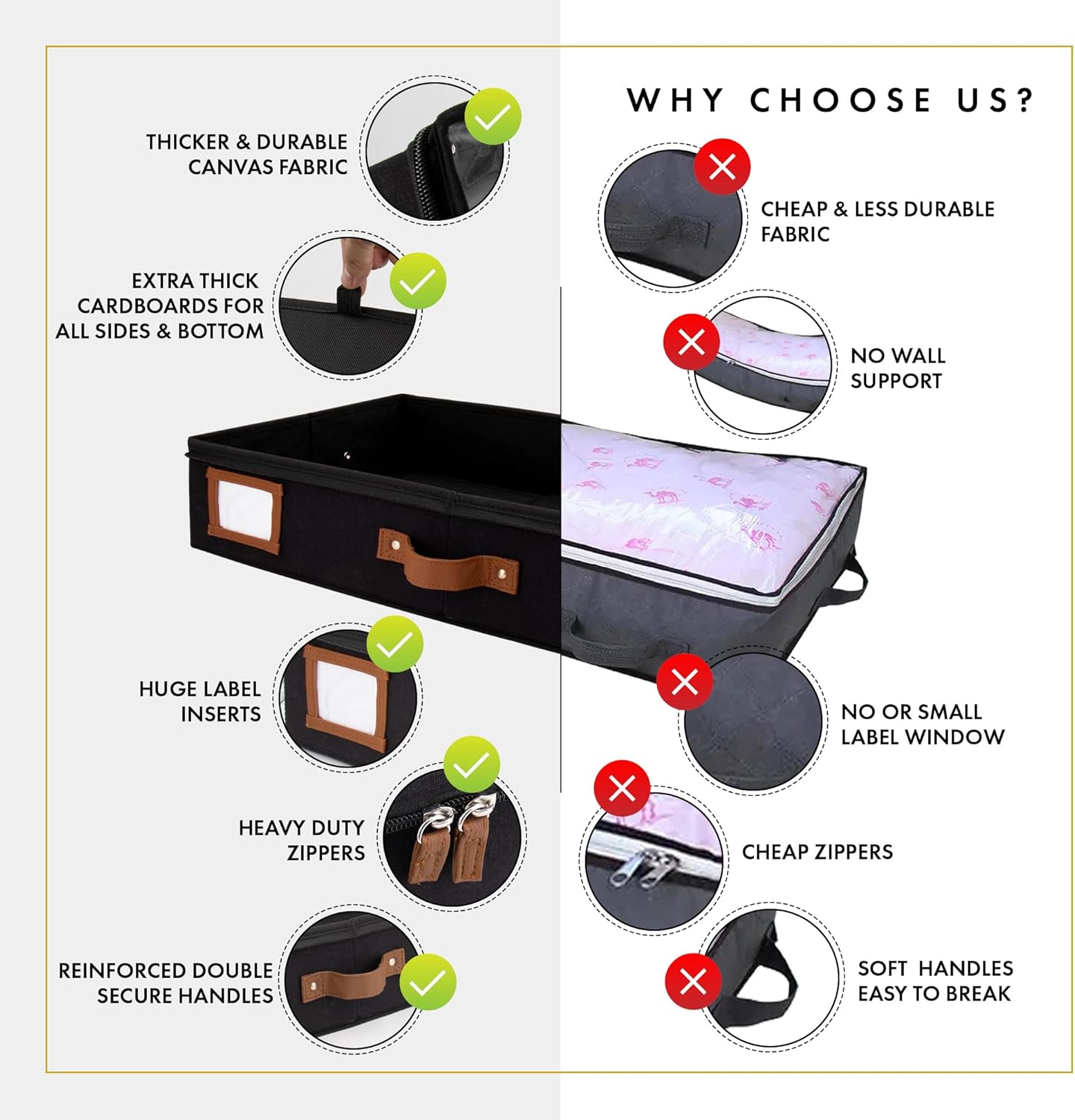 - ๐๐๐๐ฏ๐ฒ ๐๐ฎ๐ญ๐ฒ ๐๐ข๐ฉ๐ฉ๐๐ซ ๐๐ฅ๐จ๐ฌ๐ฎ๐ซ๐: Committed to safety and organization, our under bed flat storage boxes are precisely tailored. The zipper of our storage containers for under the bed ensures that the items inside are protected from dust and other elements that can cause damage. Our under bed storage with lid are pusposely designed with durability and strength making it ideal for flat clothing storage that require frequent opening and closing, or those that carry heavy loads.
