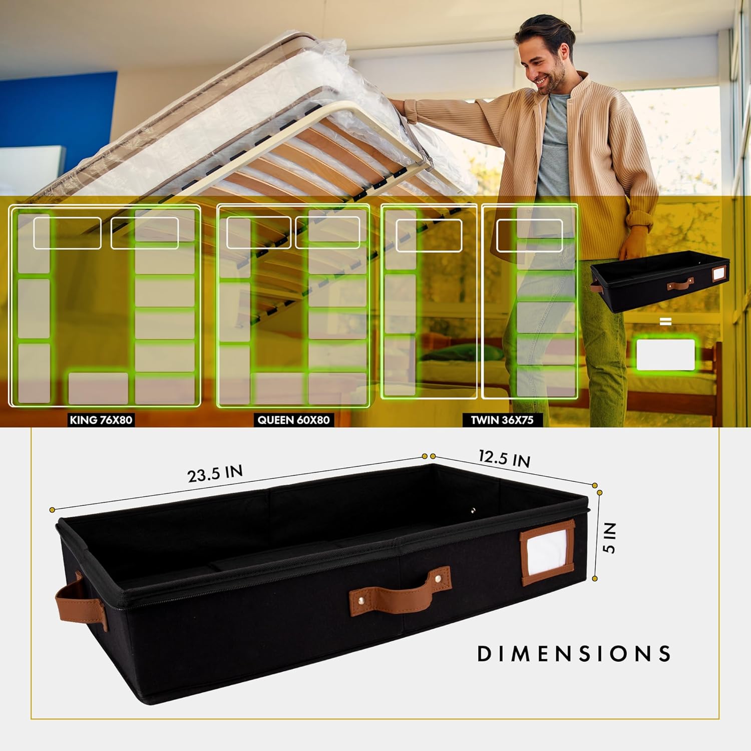 - ๐๐ฎ๐ฉ๐๐ซ๐ข๐จ๐ซ ๐๐๐ง๐ฏ๐๐ฌ & ๐๐๐ญ๐๐ซ๐ข๐๐ฅ: Made from premium quality canvas fabric, our 23.5x12.5x5" Under Bed Storage Containers With Lids are durable, sturdy, & carefully designed to hold large quantities of clothes, blankets, shoes, & various bed accessories. These under bed storage dorm drawers are designed to fit perfectly under your bed for efficient bed room organization and storage, making it an under bed organizer that will easily blend into your home's aesthetic style.