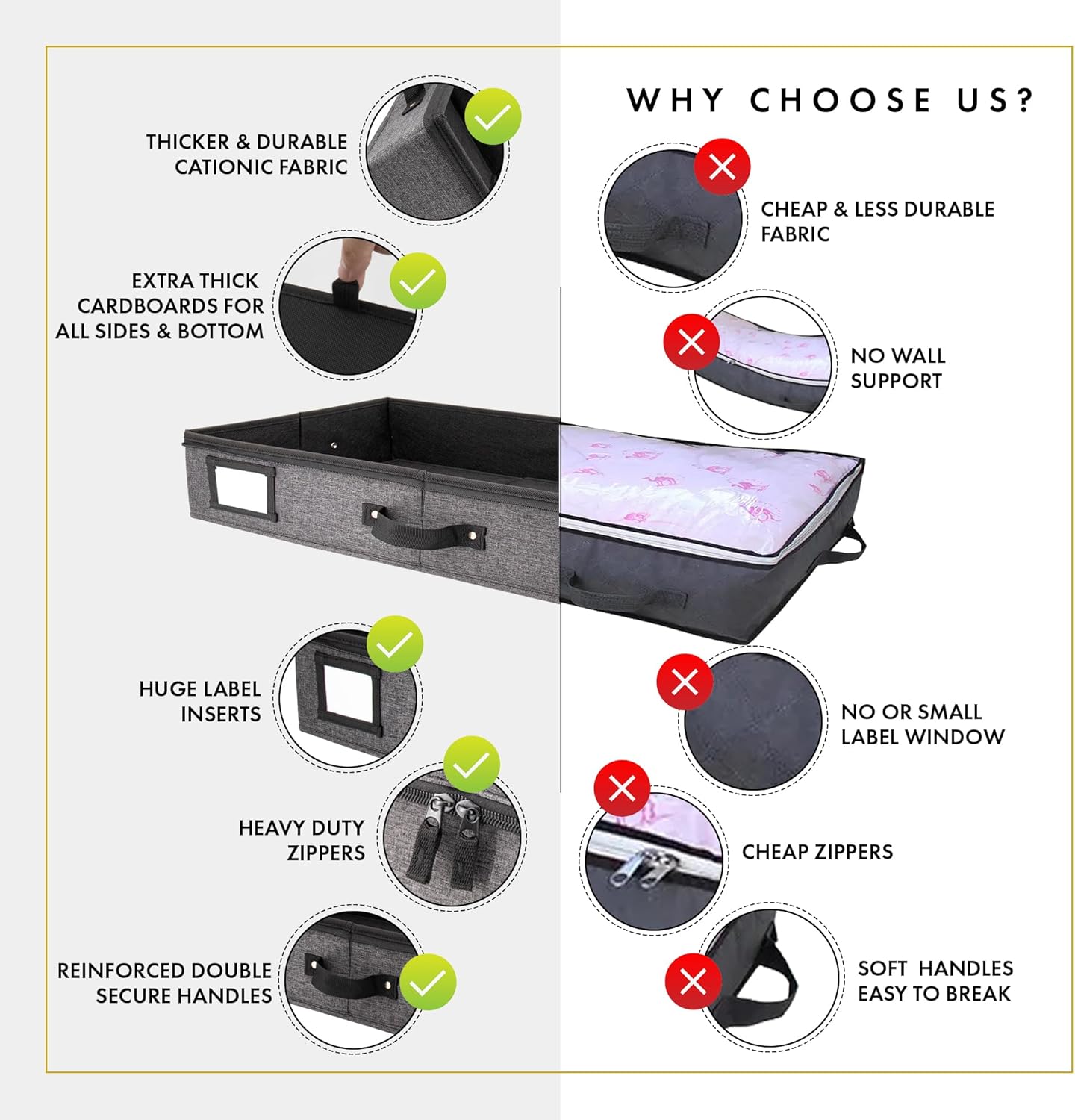 - ๐๐ฉ๐๐๐ ๐๐๐ฏ๐๐ซ ๐๐ซ๐ ๐๐ง๐ข๐ณ๐๐ซ: Prioritizing superior under bed storage for clothes not only helps you declutter, but also utilize hidden spaces like under the bed and under the couch. Our stylish storage for under beds is also ideal as a shoe storage organizer, low profile under crib storage, blanket storage, under bed ornament storage box, low profile storage box, and storage for other items such as yarns, sweaters, holiday decorations, prized collections, & more!