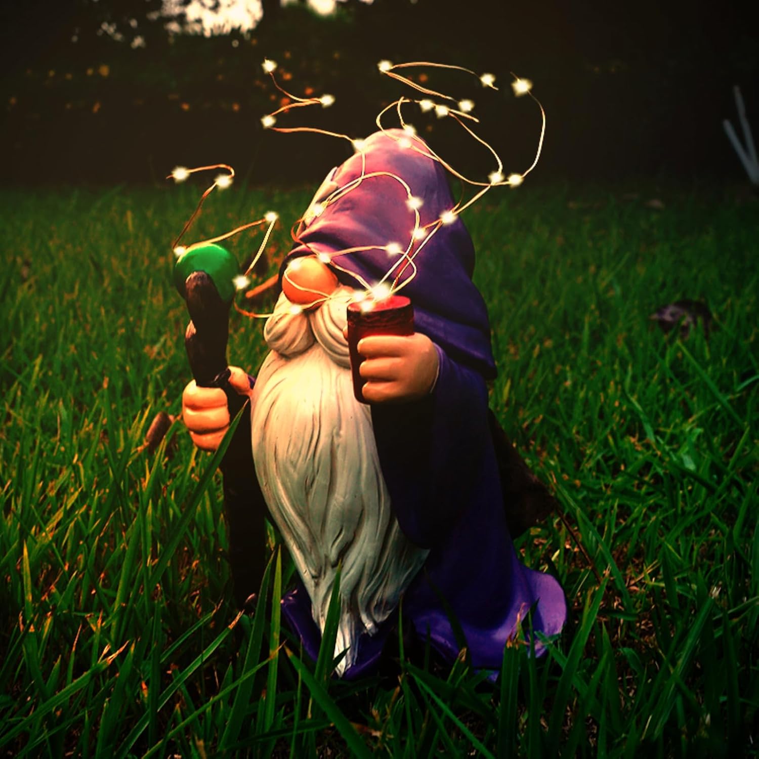 Resin Gnome Statue Outdoor Decor Waterproof Firework Solar LED Lights Gnomes Garden Sculpture Decorations for Outside Lawn Patio Yard Ornament Gifts (Gnome)
