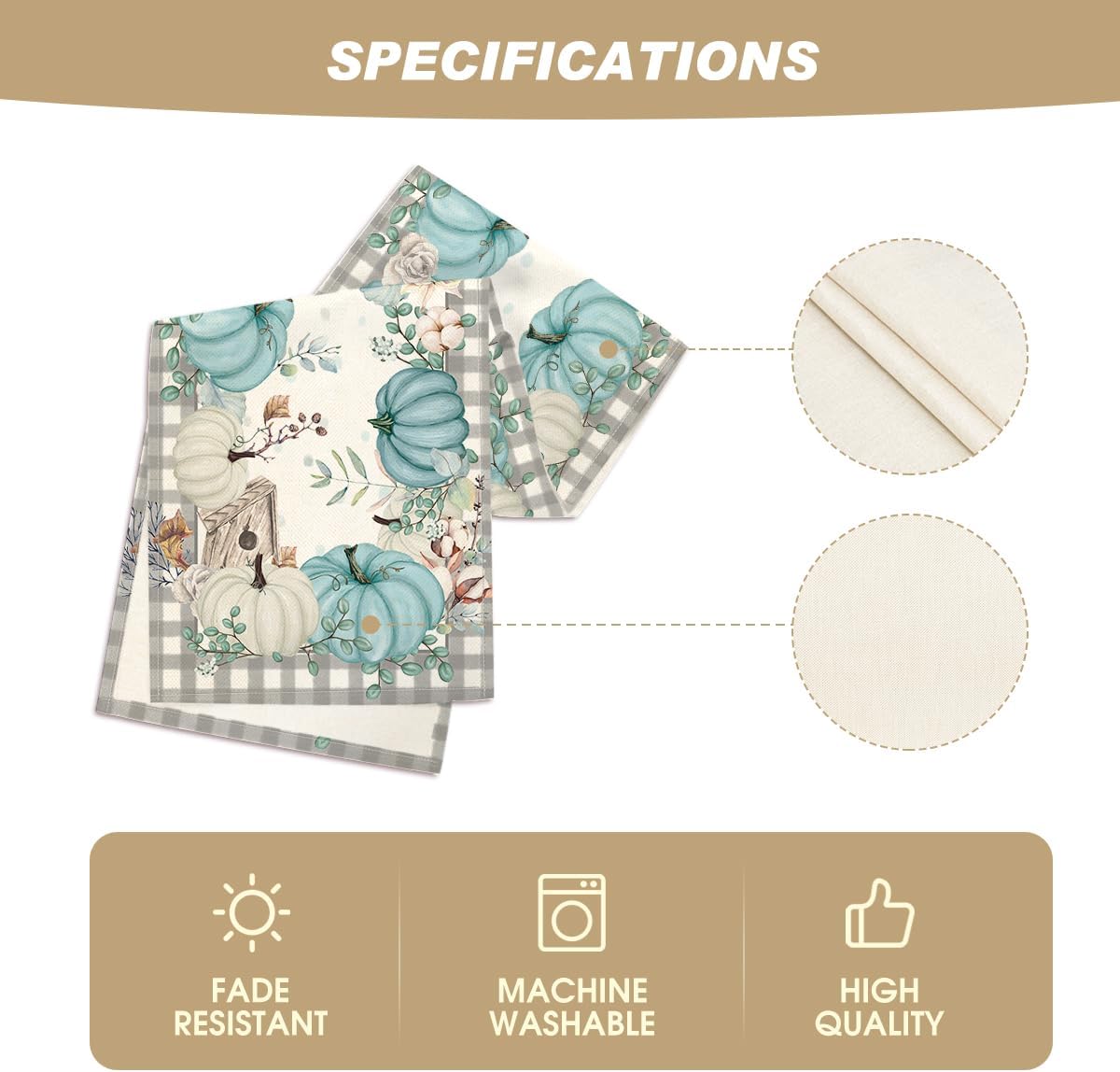 Artoid Mode Buffalo Plaid Pumpkins Leaves Fall Table Runner, Autumn Thanksgiving Kitchen Dining Table Decoration for Home Party Decor 13x72 Inch