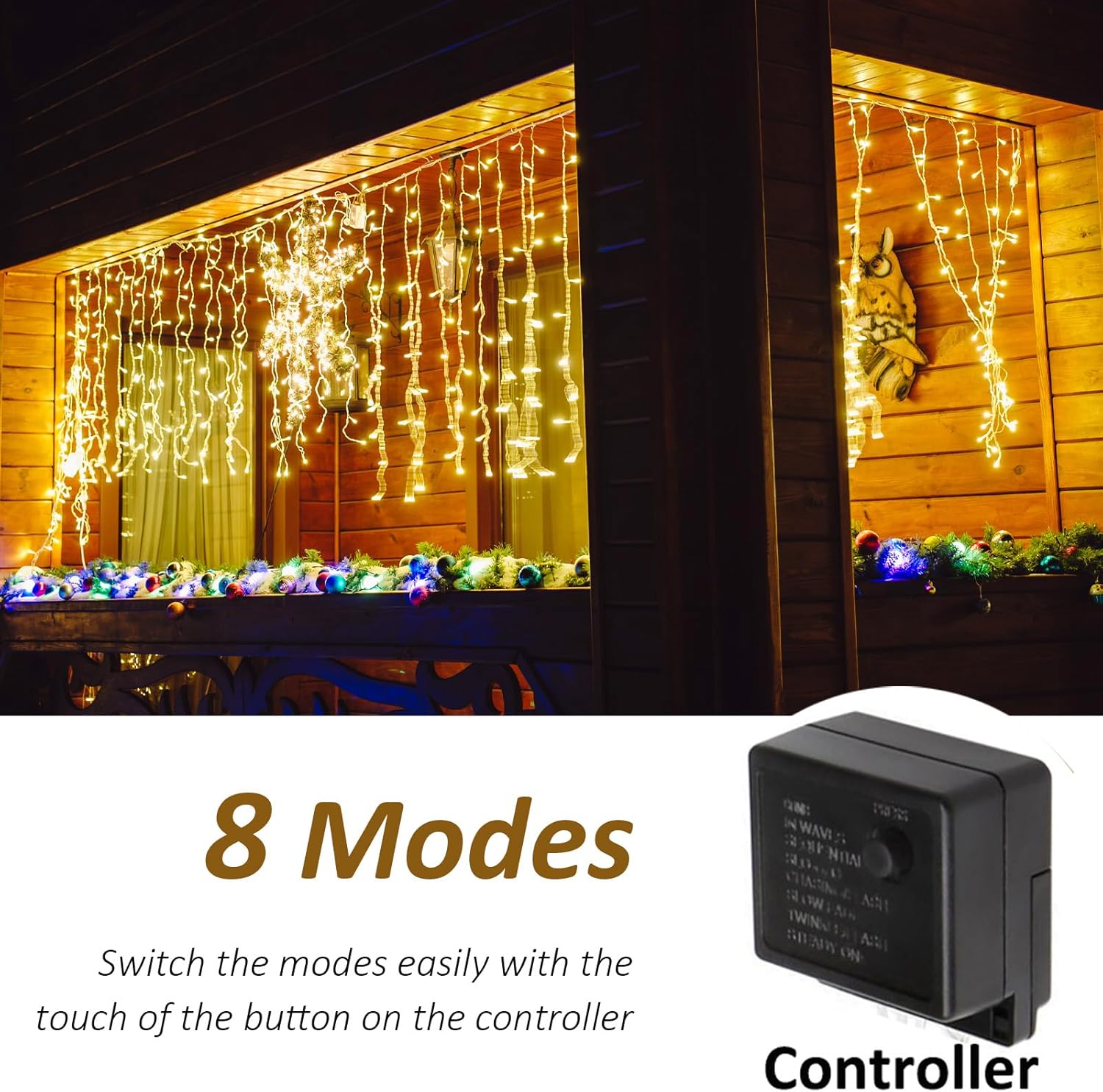 - [Explore 8 Lighting Modes] They feature various settings - Combination, Waves, Sequential, Slogs, Flash, Slow Fading, Twinkle and Steady. Switch between modes easily with the touch of the button on the controller.