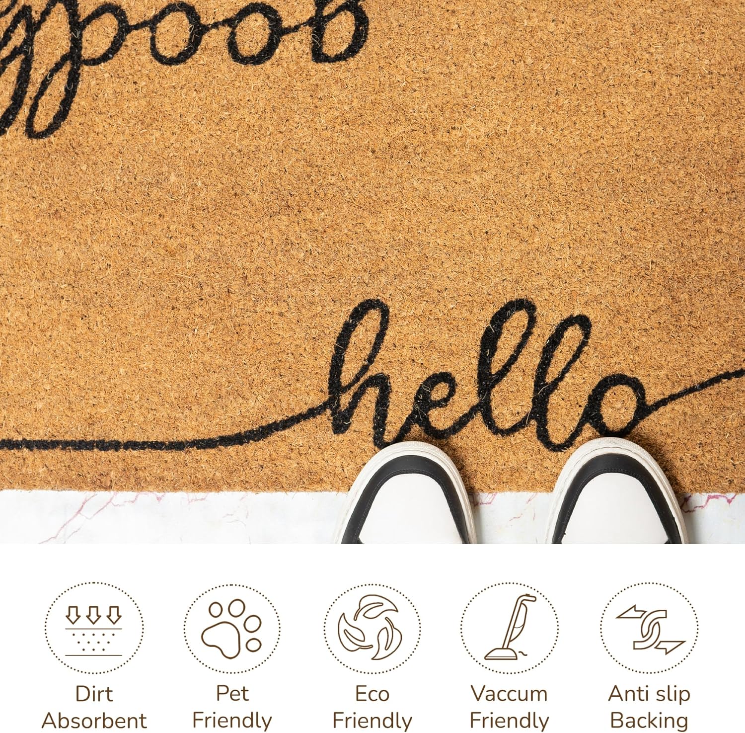 - NATURAL COIR MATS TO ENHANCE YOUR ENTRYWAY: Transform your entryway with our natural coir mats, designed to enhance the aesthetic appeal of your home. Crafted from high-quality coconut coir material, our outdoor rugs welcome door mat collection adds a touch of rustic charm to your patio decor, while ensuring functionality and durability.