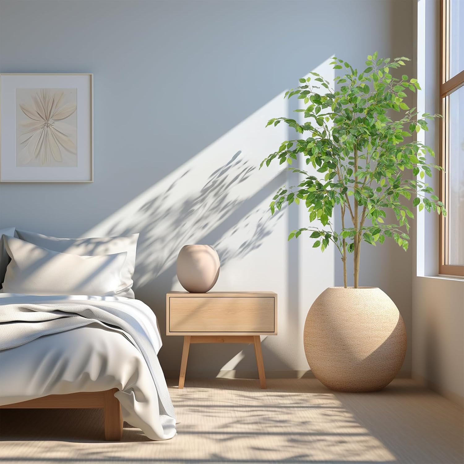 - 【Realistic Looking】This ficus tree artificial uses a technique that closely resembles the surface of real ficus tree leaves, making the surface of the leaves as smooth and glossy as a real ficus tree. It also features a full yet airy design, natural interfaces, and trunk, making the tree looks very realistic. It will be a beautiful sight in your home.