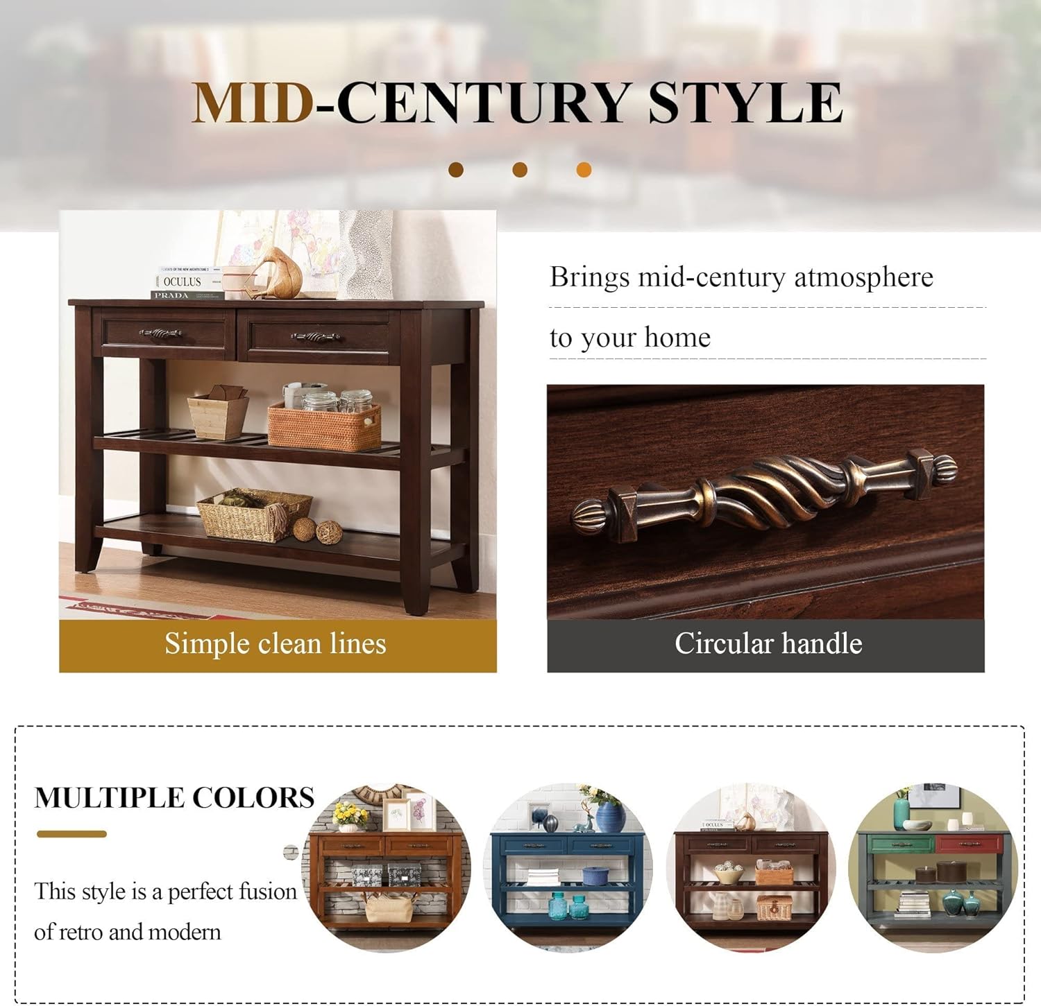 - 【Multifunctional Console】 This console can be used not only as a porch table and sideboard, but also as a sofa table, porch table and buffet table. You can put it in the kitchen, bedroom, hallway, living room, office, etc. A space-saving desk can help you organize your supplies and keep your room clean and organized.
