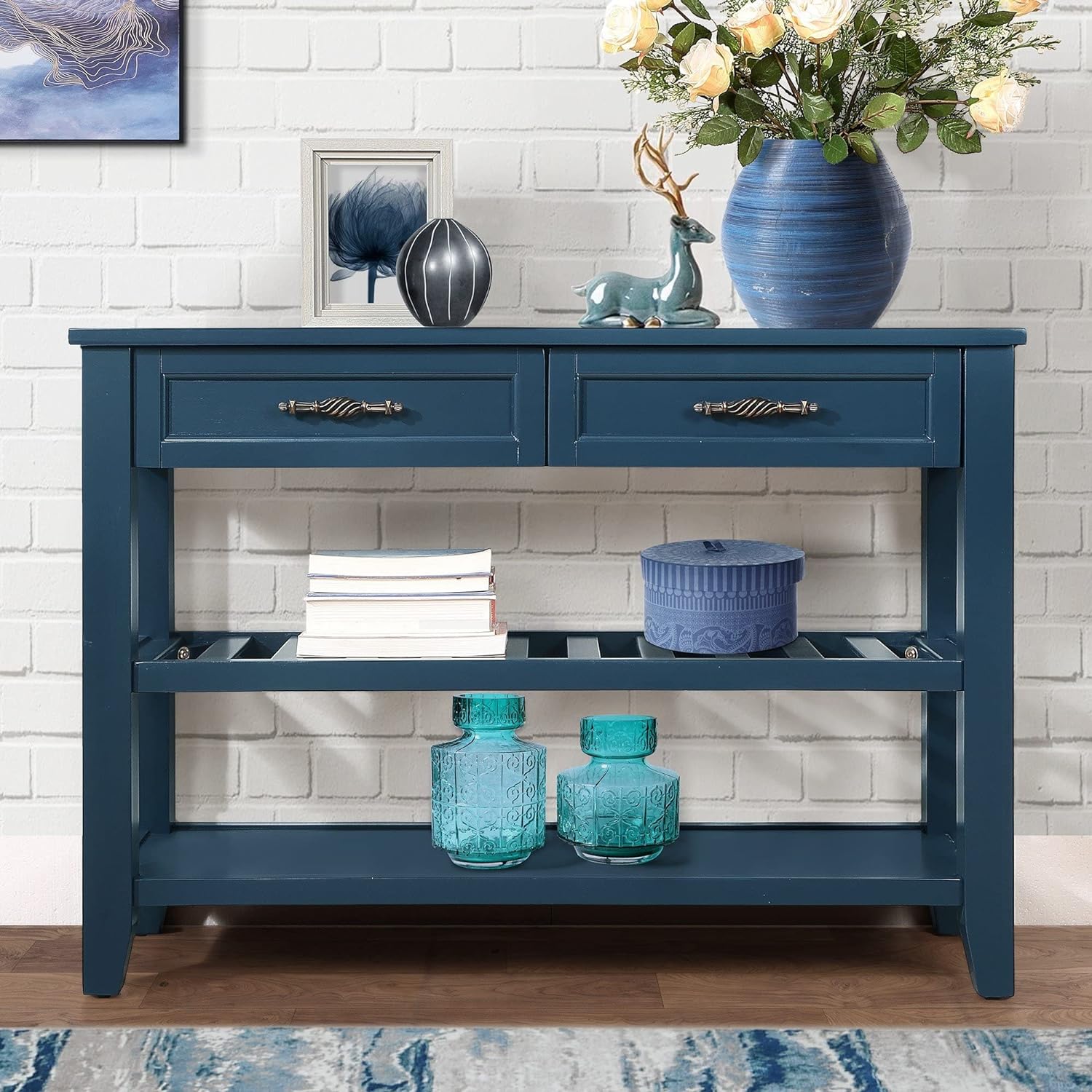 Solid Wood Console Table Entryway Table with Storage Drawers and Shelves Sofa Table for Entry Hallway Foyer(42" Navy Blue)