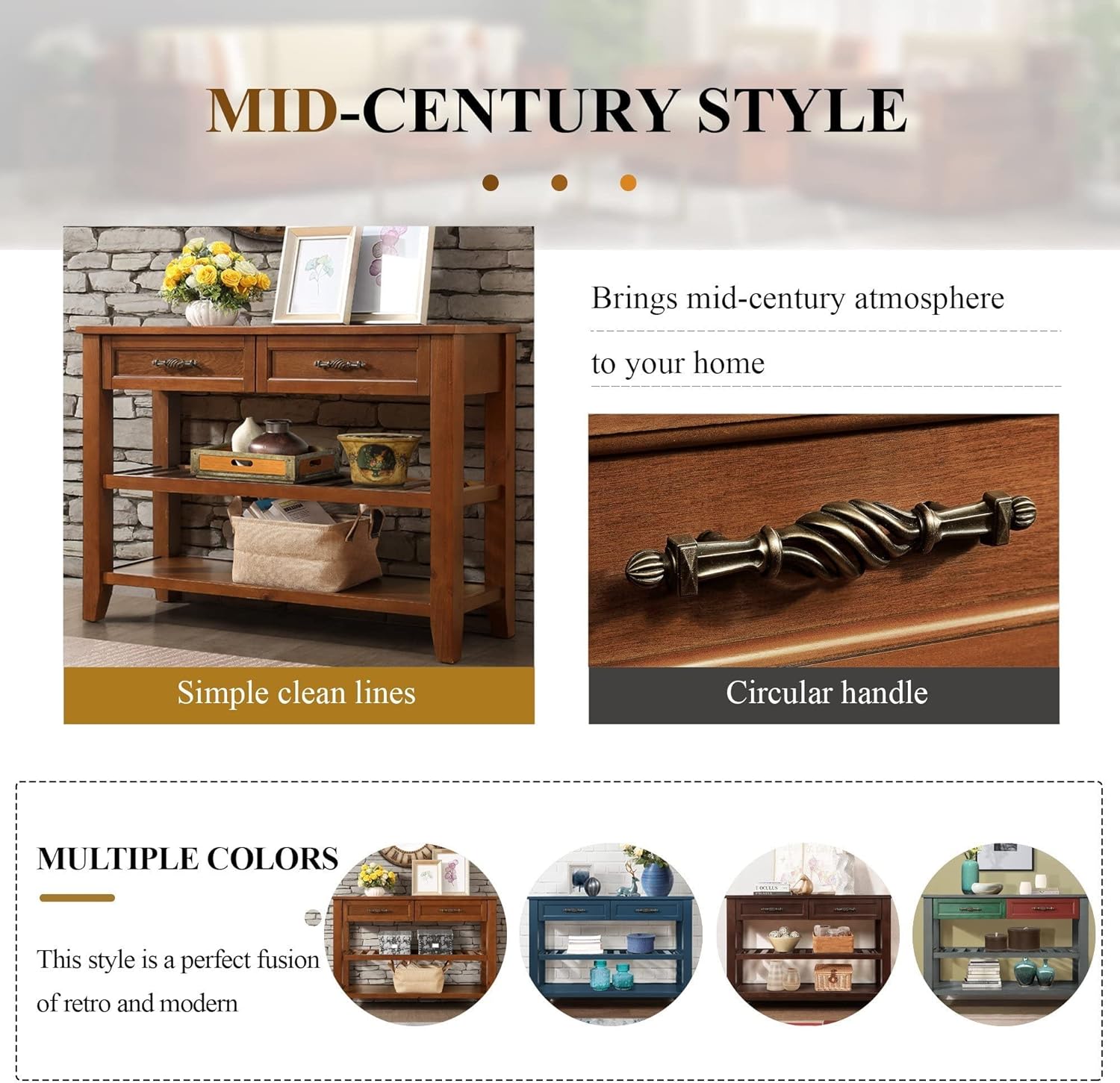 - 【Multifunctional Console】 This console can be used not only as a porch table and sideboard, but also as a sofa table, porch table and buffet table. You can put it in the kitchen, bedroom, hallway, living room, office, etc. A space-saving desk can help you organize your supplies and keep your room clean and organized.
