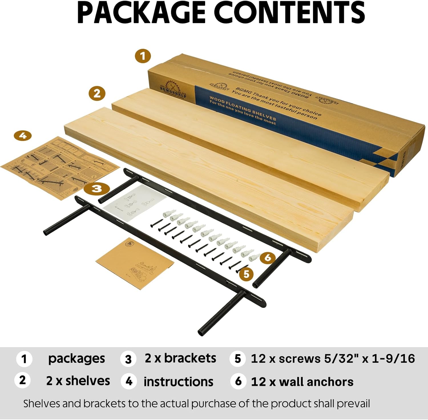 - EASY TO INSTALL: These floating shelves come with stainless steel galvanized invisible brackets, toggle bolts for drywall, and simple instructions to help you install them. These wall shelves are easy to assemble, requiring only two boards and the necessary screws and hardware. We also provide detailed instructions for quick and easy assembly!