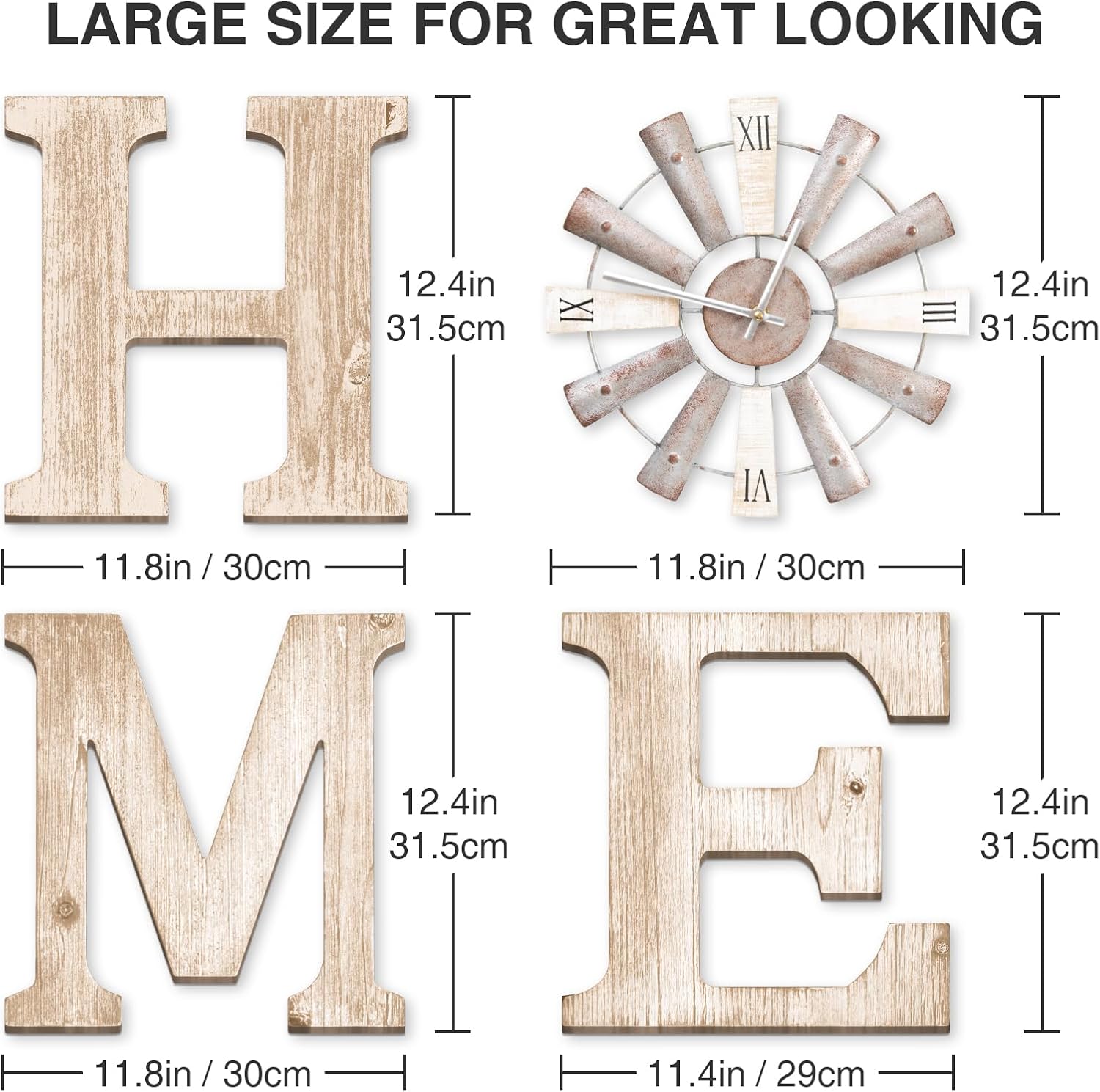 - Farmhouse Wall Decor - Our rustic home signs feature the letters "H," "M," and "E," meticulously crafted from high-quality MDF, while the letter "O" takes the form of a windmill made of ironwood, serving as both a decorative piece and a functional wall clock. The rustic aesthetics beautifully complement modern or farmhouse home styles