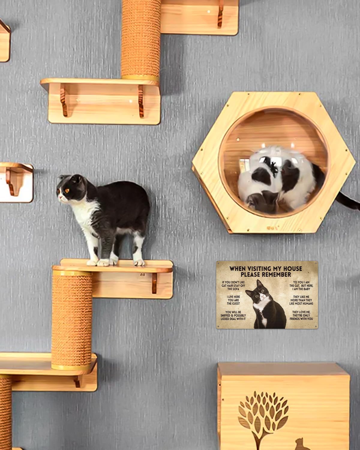ALKB Funny Tuxedo Cat-Themed Sign 8x12 Inch - Visitor’s Guide to Interacting with Cats - Gift for Cat Lovers’ Home Decor