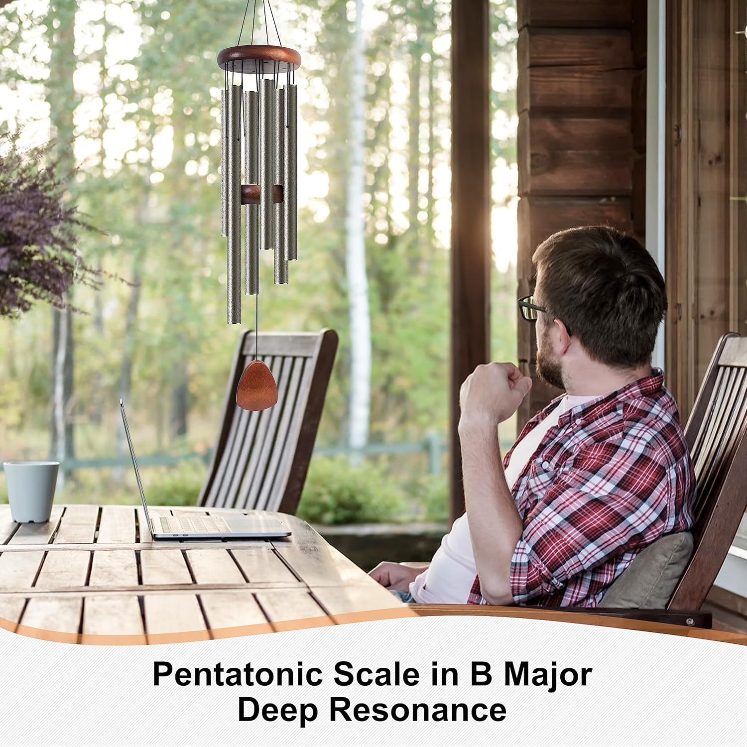 - ๐ต[Soothing Melody]: The professional tuner assisted with the tuning, trying a variety of materials before choosing a 13mm thick aluminum tube to adjust to a deep tonal B major pentatonic scale. When the breeze blows the windcatcher and drives the aluminum tube to resonate, you will hear the deep tone. For you who are lounging on the patio, the breeze blowing the wind chimes is a pleasure, the atmosphere is intoxicating and it can relax your body and mind.