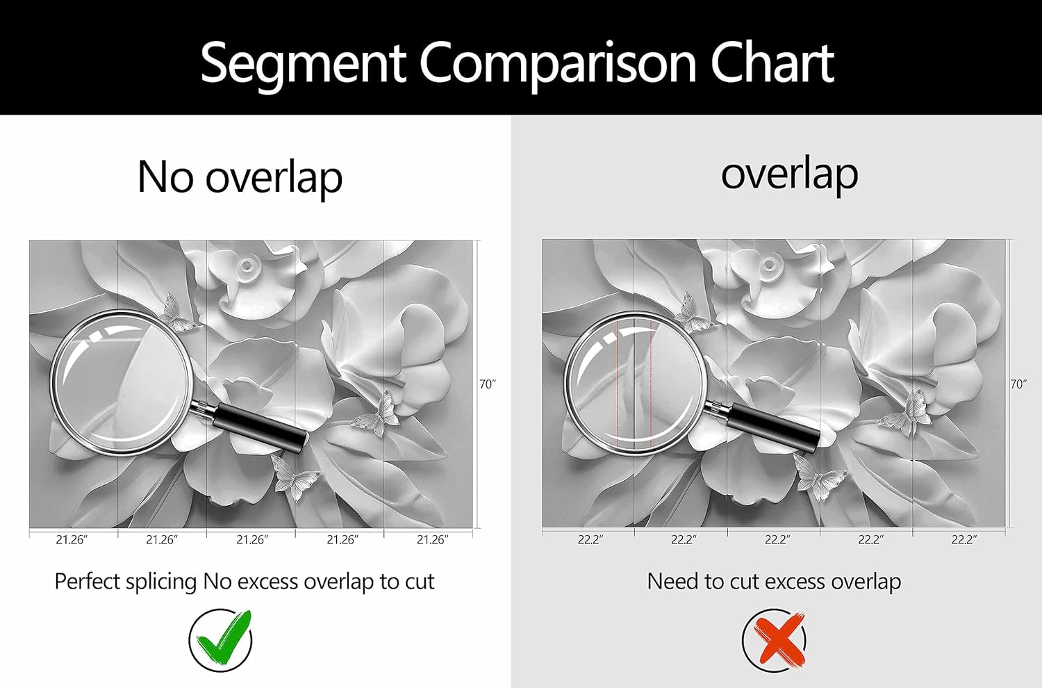 - Mural Size: The total size of this mural wallpaper is 106" x 70" / 270CM x 178CM (W x H), cut into 5 pieces, each measuring 21.26" x 70", for easy installation.