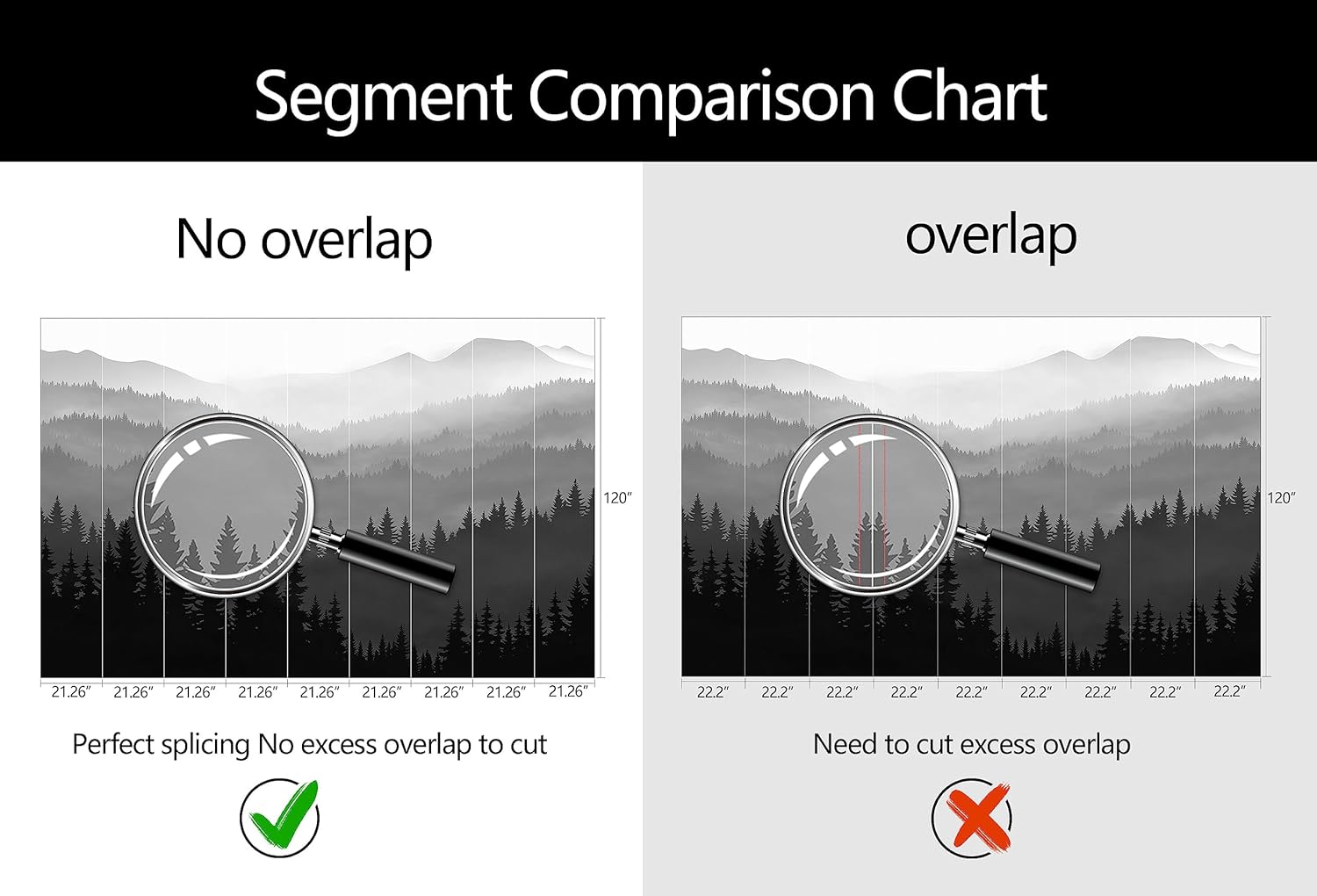 - Mural Size: The total size of this mural wallpaper is 191" x 120" / 486CM x 305CM (W x H), cut into 9 pieces, each measuring 21.26" x 120", for easy installation.