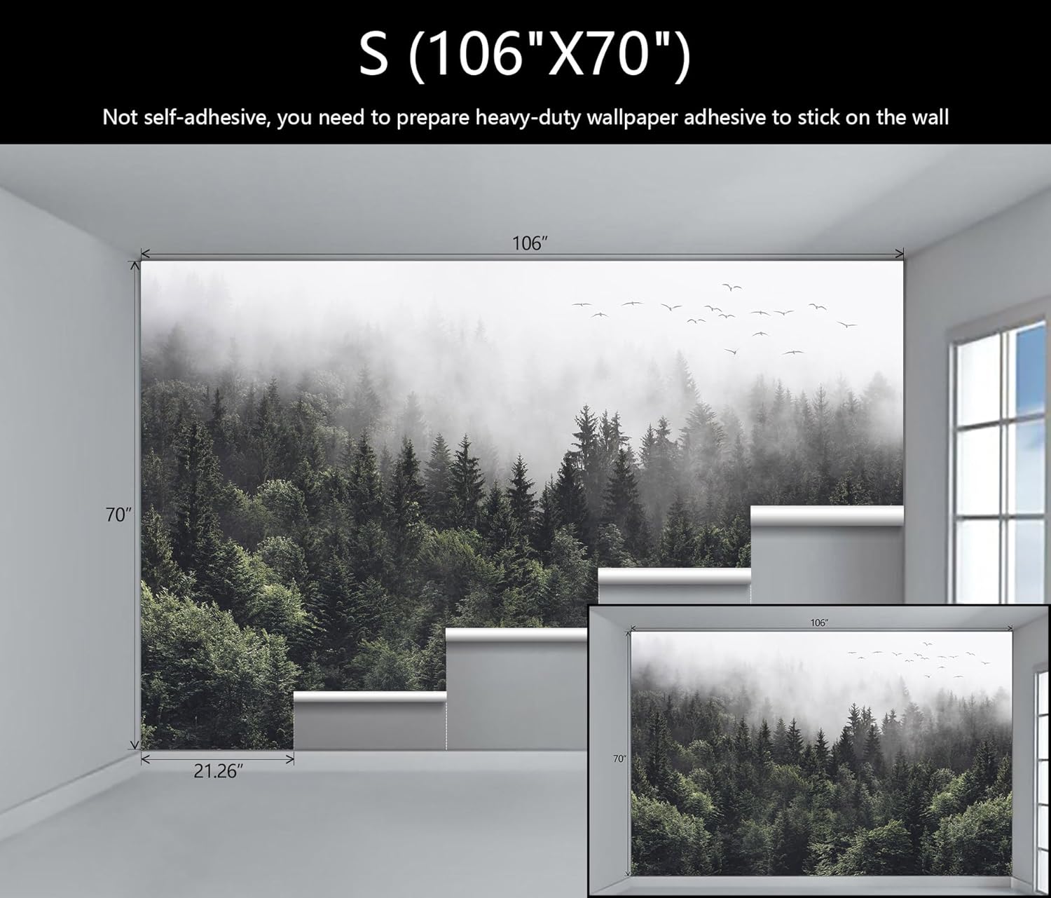 WFBHUA-Foggy Forest Woodland Wallpaper Green Nature Landscapes Wall Murals for Bedroom Living Room(Not Peel and Stick)