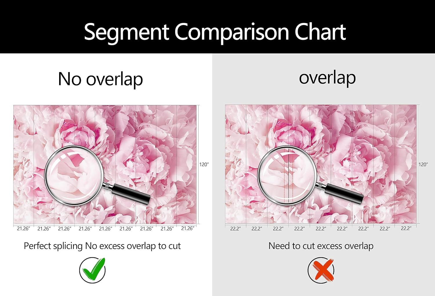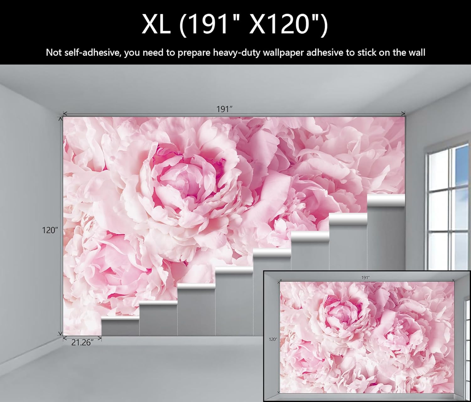 - Mural Size: The total size of this mural wallpaper is 191" x 120" / 486CM x 305CM (W x H), cut into 9 pieces, each measuring 21.26" x 120", for easy installation.