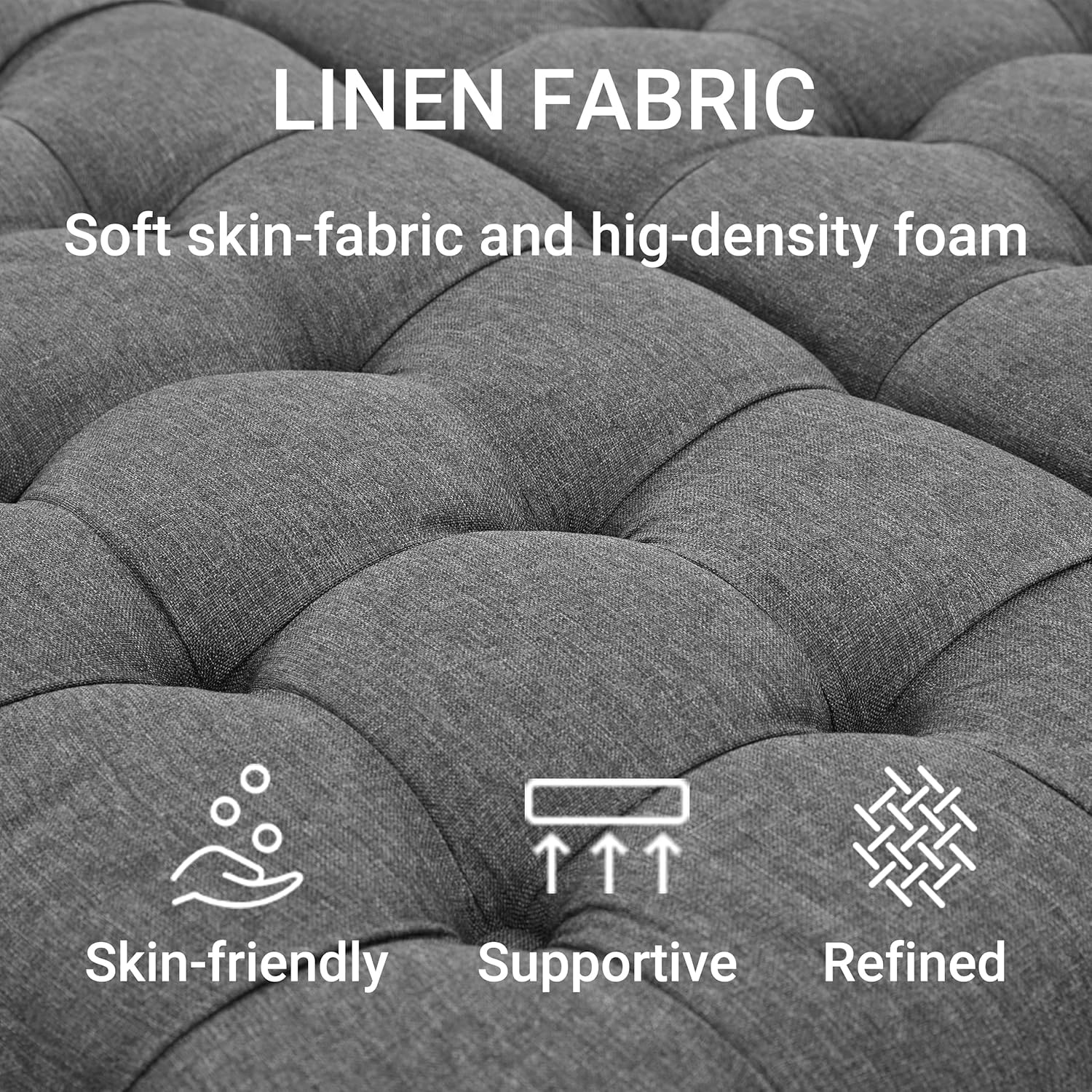 - 【ELEGANCE AND REFINED】With a minimalistic yet refined structure, these ottomans bring out a simplistic style that emphasizes comfort and functionality. The button-tufted seat adds traditional elegance to the piece. Rivet design of retro style brings a dignified and elegant noble atmosphere to your home decoration. This storage ottoman bench will tie your home together with its stunning looks, making this the ideal addition to your space.