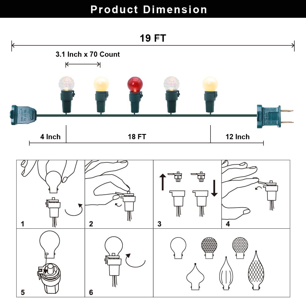 - Red White Christmas lights : Totally 19Feet & 70 Mini Globe Round Bulb Lights . LED bulbs always cool to the touch when lit. If one bulb burns out the rest will stay lit.LED lights use up to 80% less power than incandescent bulbs.