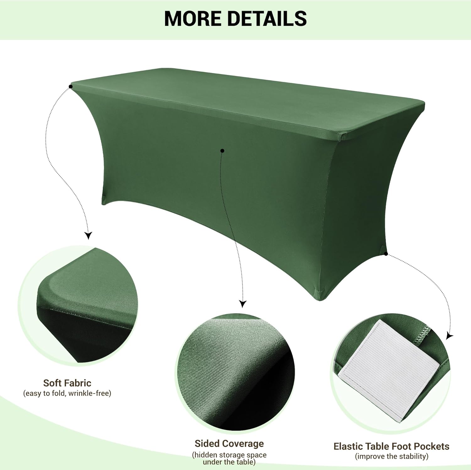 Obstal 6ft Blackish Green Stretch Spandex Table Cover for Standard Folding Tables - Universal Rectangular Fitted Tablecloth Protector for Wedding, Banquet and Party, 72L x 30W x 30H Inches, 2pc