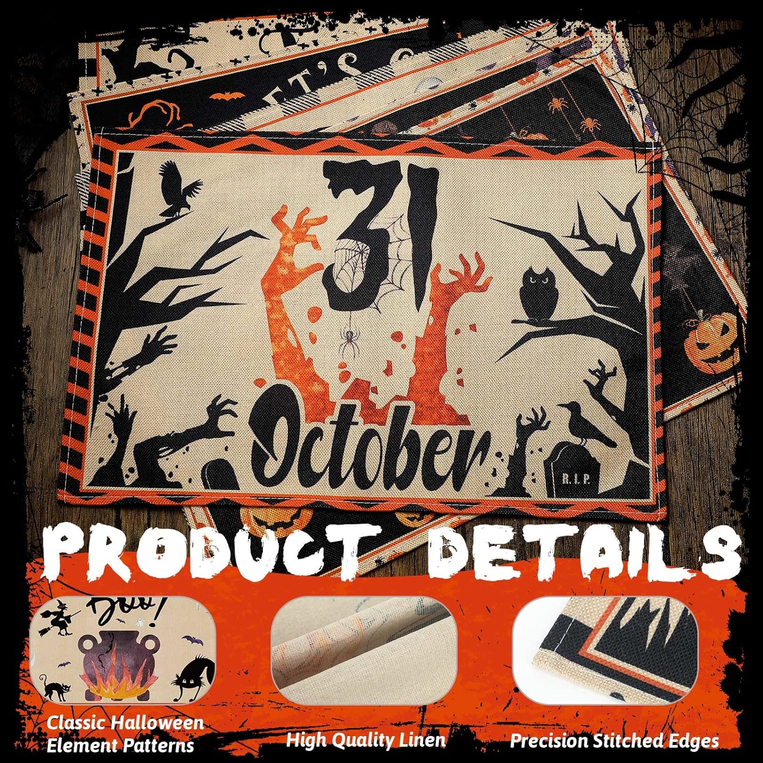 - Halloween Design: our Halloween table mats have a beautiful design of Halloween style, different from other placemats, spooky design style will add a scary holiday feeling to your home, but also bring you more choices for Halloween home decoration