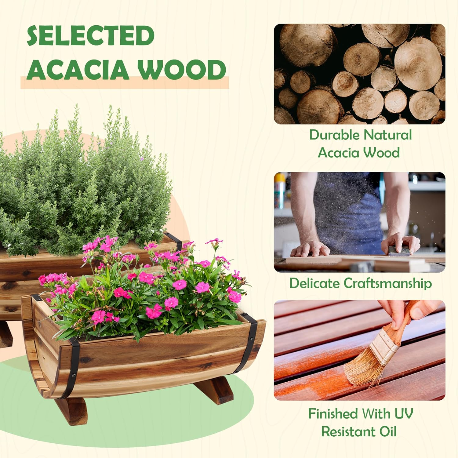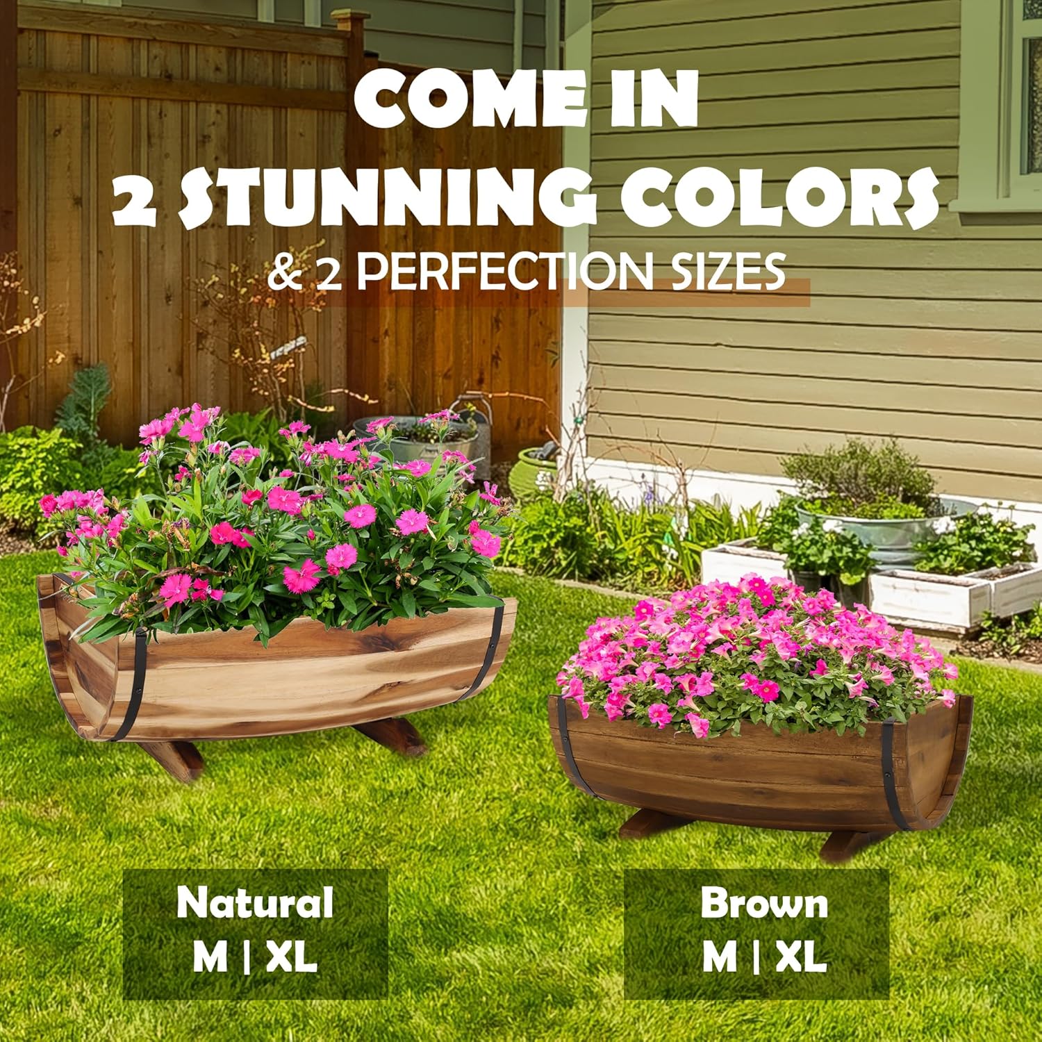 - DURABLE MATERIALS: Not only visually appealing, the strength of fir wood combined with its protective oil coating provides a durable and reliable half barrel planters outdoor for your plants