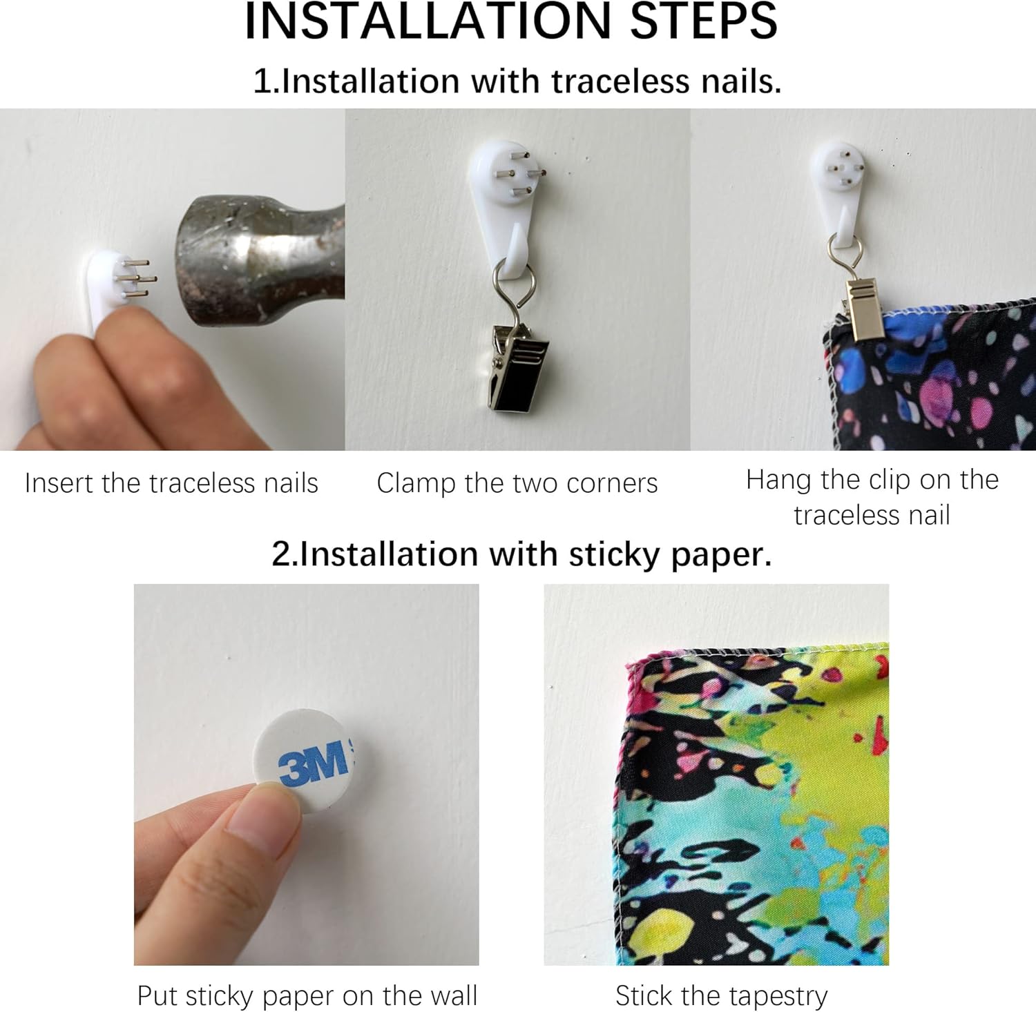 - Care Instruction & Package: Hand or machine washable, gentle cycle in cold water, tumble dry on low heat, iron at low temperature.Do not bleach it. Package Included: 1x Tapestry with Hanging Accessories( 2 Traceless Thumbtacks + 2 Metal Clips + 2 Mounting Tapes).