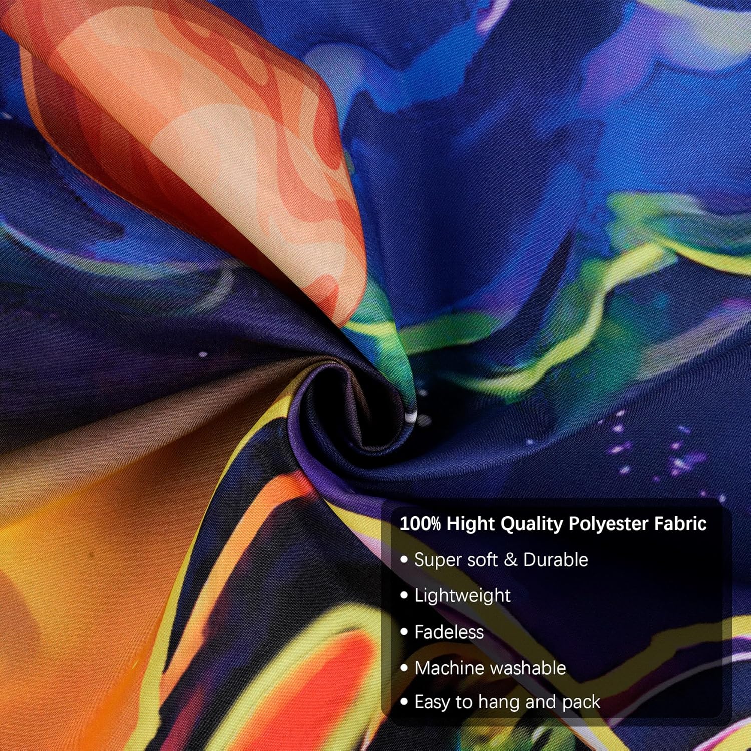 - Multi-purposes: The blacklight tapestry can be used both indoor and outdoor as wall decor posters, party backdrop, ect. It’s also great for wall hanging, sofa cover, bedspread, table cloth, picnic blanket, fashion shawls, beach towels, ceilings, yoga mats and so on.