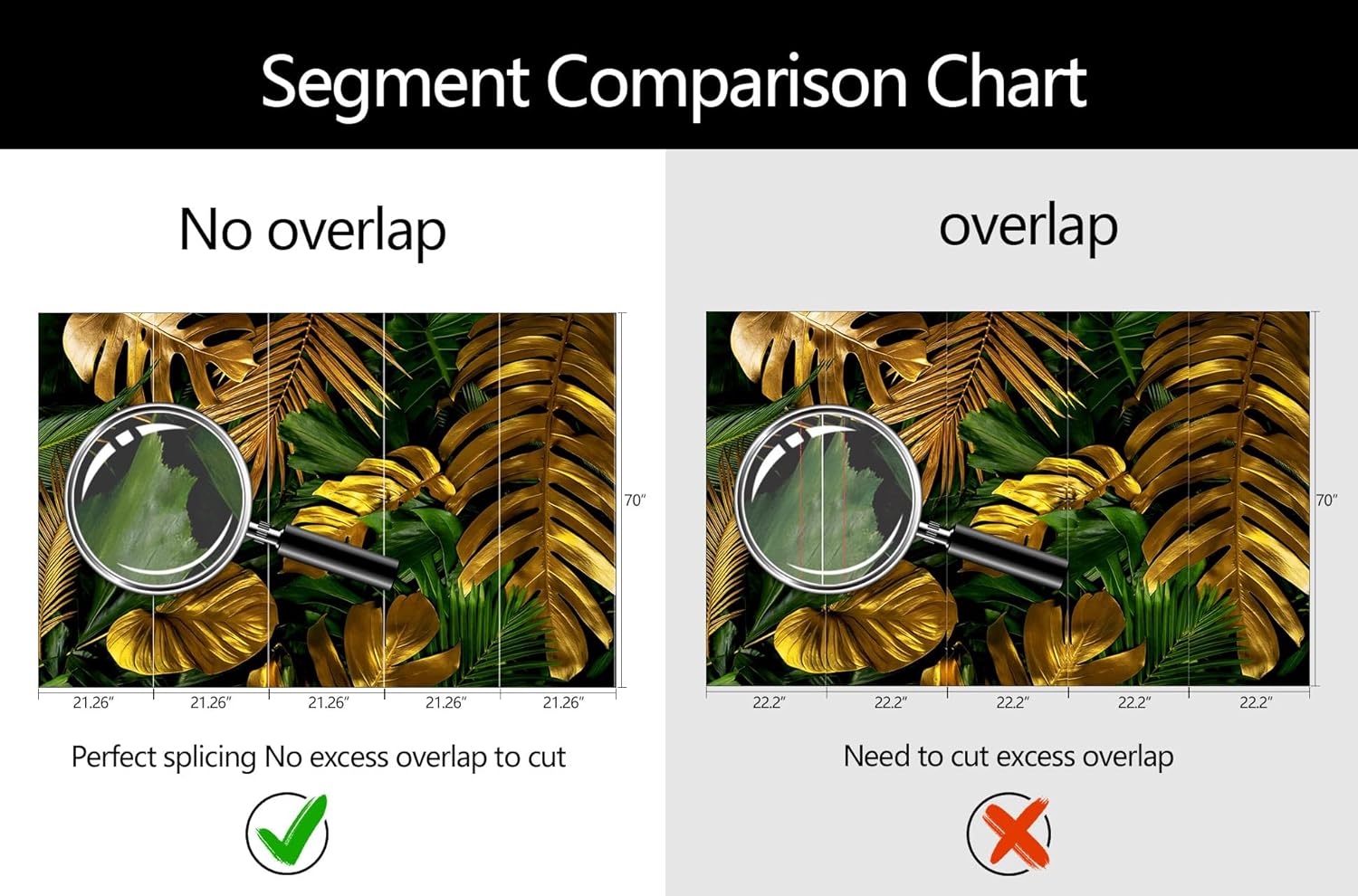 - Mural Size: The total size of this mural wallpaper is 106" x 70" / 270CM x 178CM (W x H), cut into 5 pieces, each measuring 21.26" x 70", for easy installation.