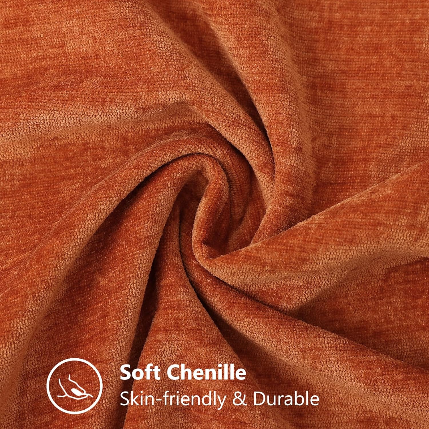 decorUhome Fall Chenille Soft Throw Pillow Covers 24x24 Set of 2, Farmhouse Velvet Neutral Decorative Euro Pillow Covers with Stitched Edge for Couch Sofa Bed Home Decor, Rust