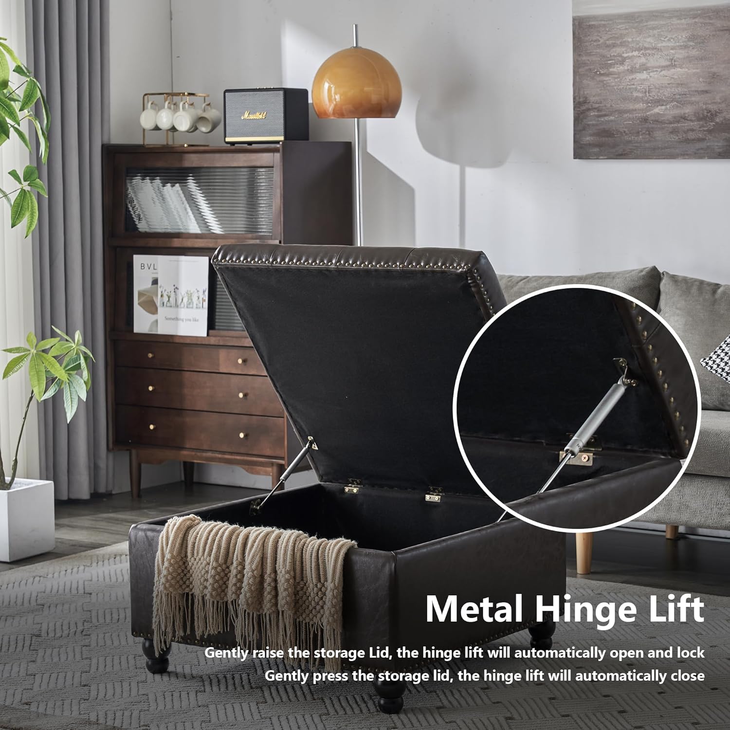 - 【Built-in Storage Compartment】 Our oversized coffe table ottoman features an extra room to store your things,the ottoman's top opens up to reveal a spacious compartment perfect for storing home essentials like throw pillows and blankets.