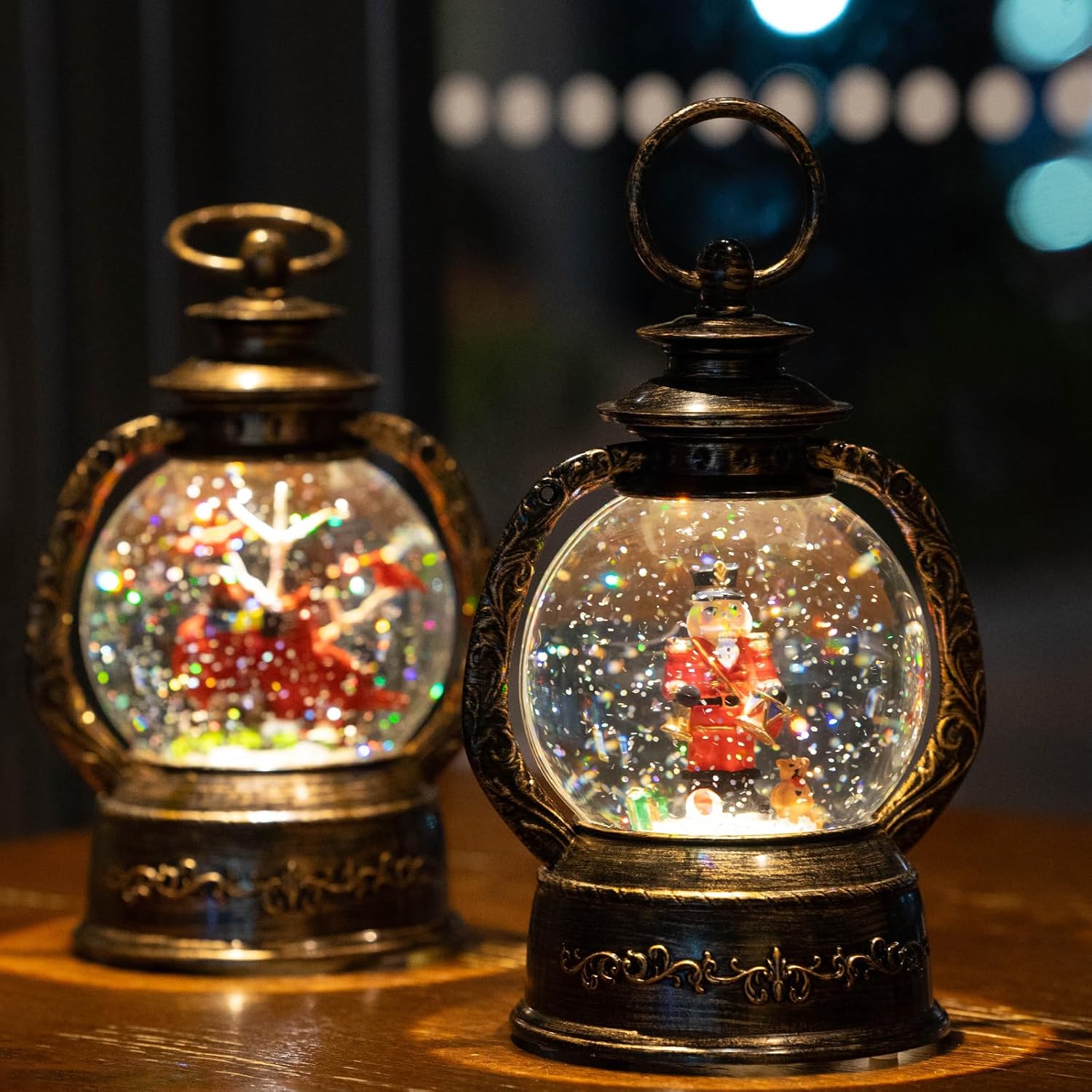 - ๐ ๐ใSnow Globe LanternใThe realistic and mighty nutcracker design, When turned on a warm LED shines on the figurine and swirling glitter to gives our Christmas globe a whimsical look for the Christmas Holiday season.