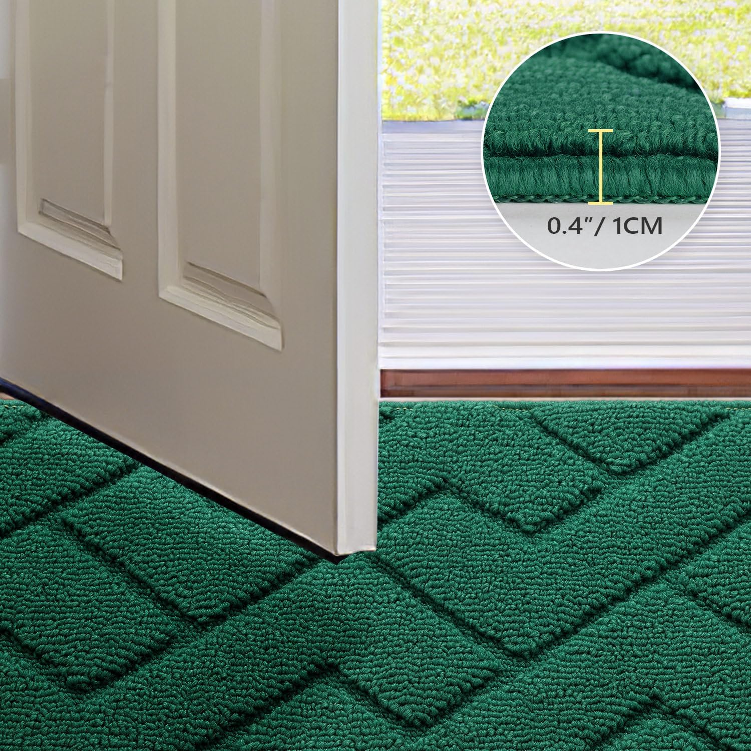 hicorfe Front Door Mat Outside Entrance,36"x59" Absorbent Muddy Dirt Resist Welcome Door Mats Outdoor Indoor,Stain and Fade Resistant,Non Slip Backing Entry Mat Doormat for Entryway(Evergreen)