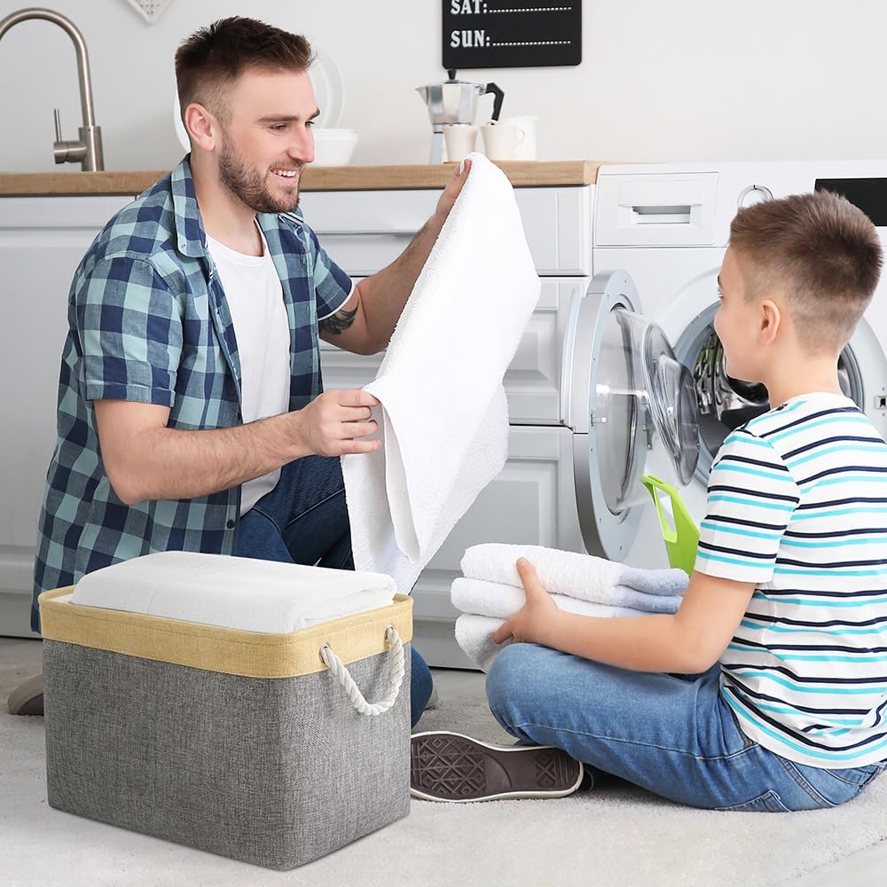 TheWarmHome Storage Basket for Organizing - Fabric Large Cubes 3 Pack 16x12x12 inch Baskets, Cube Storage Bin for Shelves Organizer Closet Cloth Gift Toy (Gold & Grey)