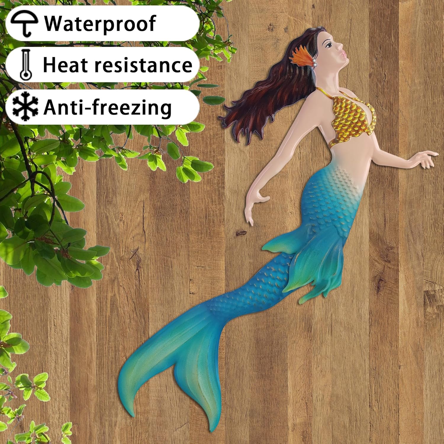 - Product Details - You will get 1 piece mermaid decoration - Measures 14.9 x 11.4 inches. The vivid metal wall decor matches is perfect for any decor style and can be displayed in bedroom, living room, office, study, baby room, kitchen, yard, porch, patio, garden and more