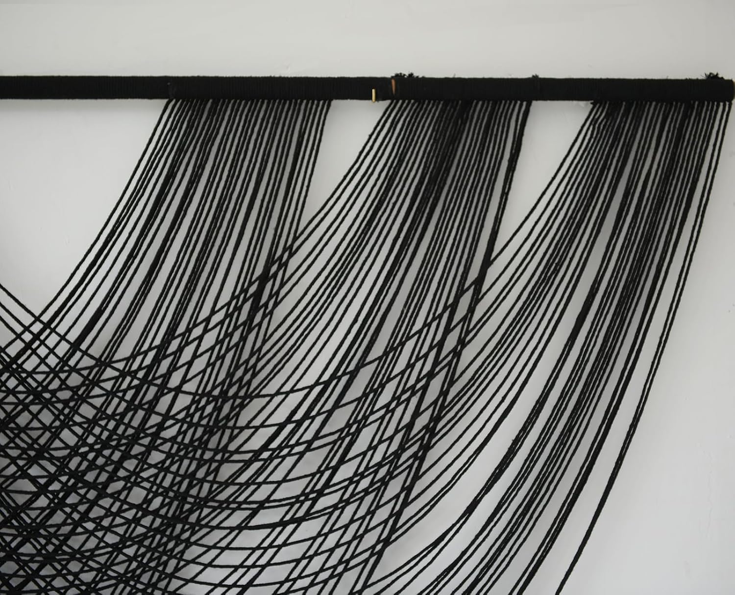 - Material: 100% Cotton macrame cord Dimensions: Size:59"W x 31"L- large macrame yarn wall hanging