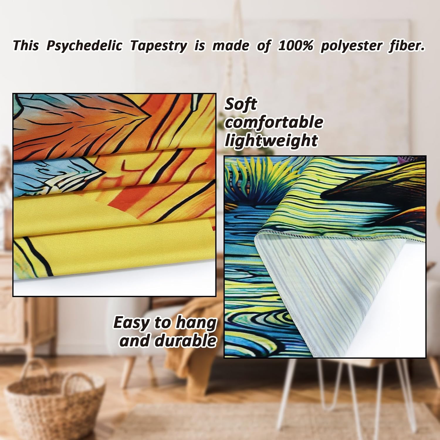- Material: This trippy sun tapestry is made of high quality polyester fabric, which is soft, durable, lightweight and easy to hang or pack away for your indoor or outdoor use.