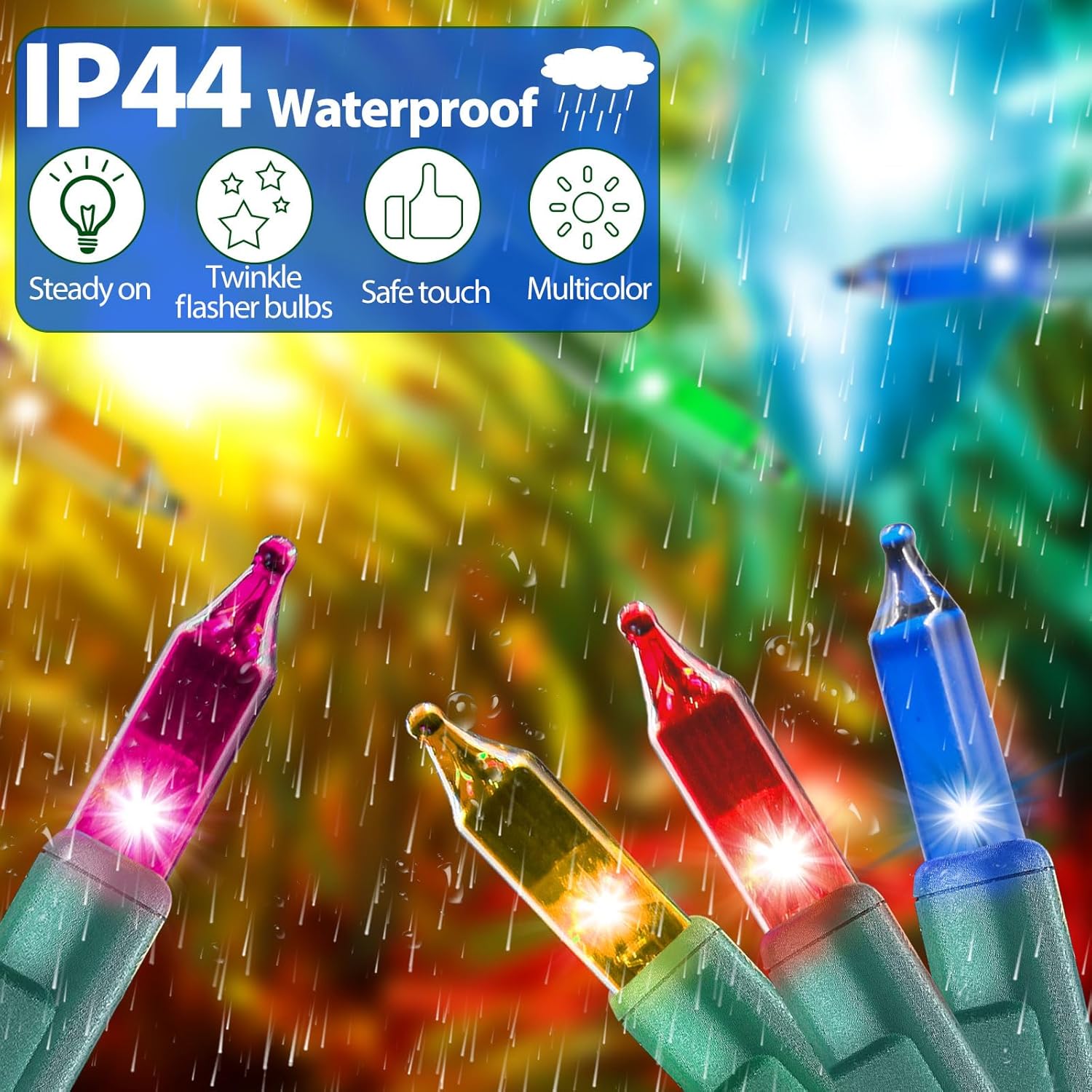 Multicolor Christmas Lights String 50FT 200 Count Incandescent Bulbs Mini Lights with Green Wire for Christmas Tree, Garland, Wedding, Party, Home, Indoor & Outdoor Festival Decoration