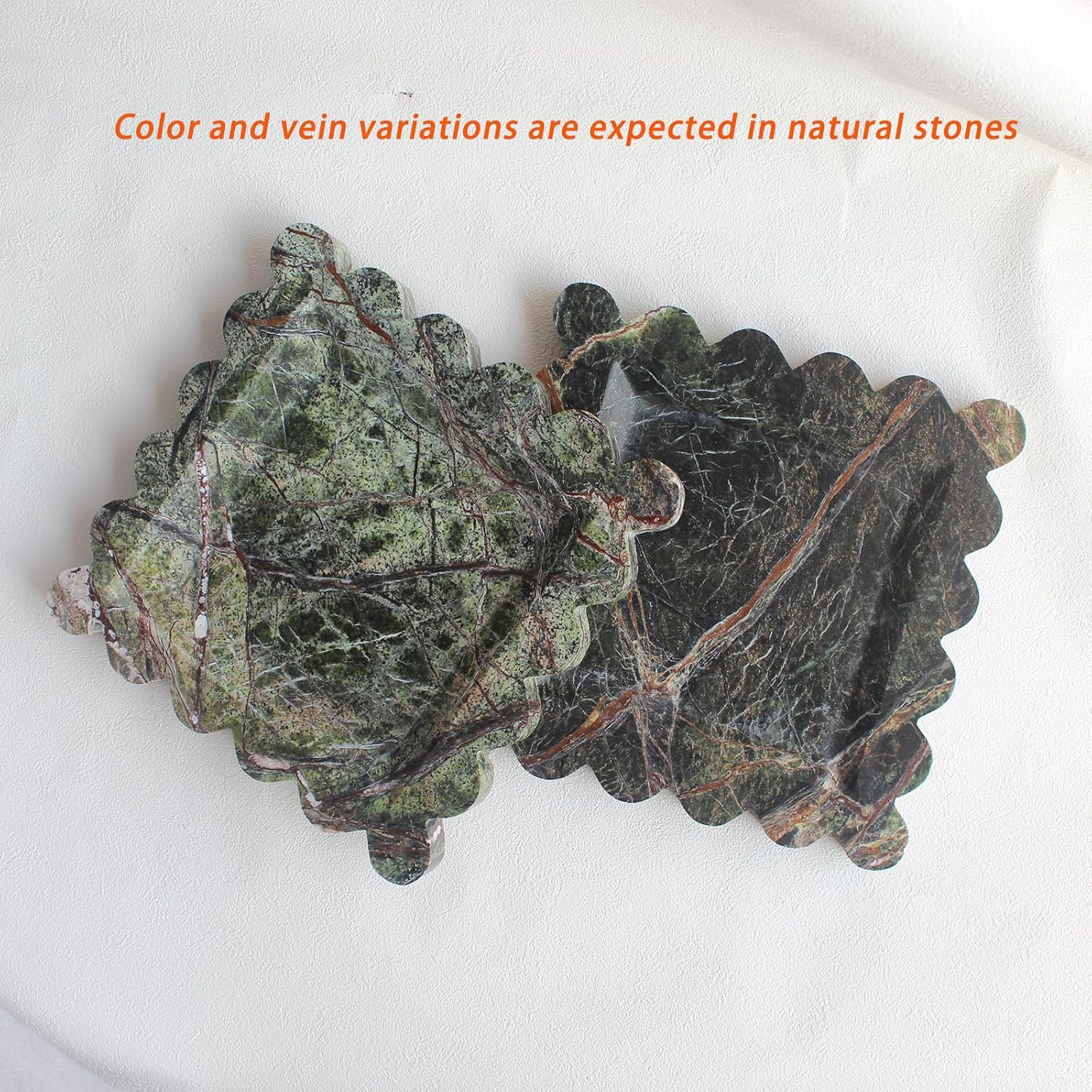 Natural Luxury Marble Tray with Scalloped Edge, Handmade Square Decorative Tray, Catch All Tray for Counter, Dresser, Nightstand and Home Décor (Rain Forest Green)