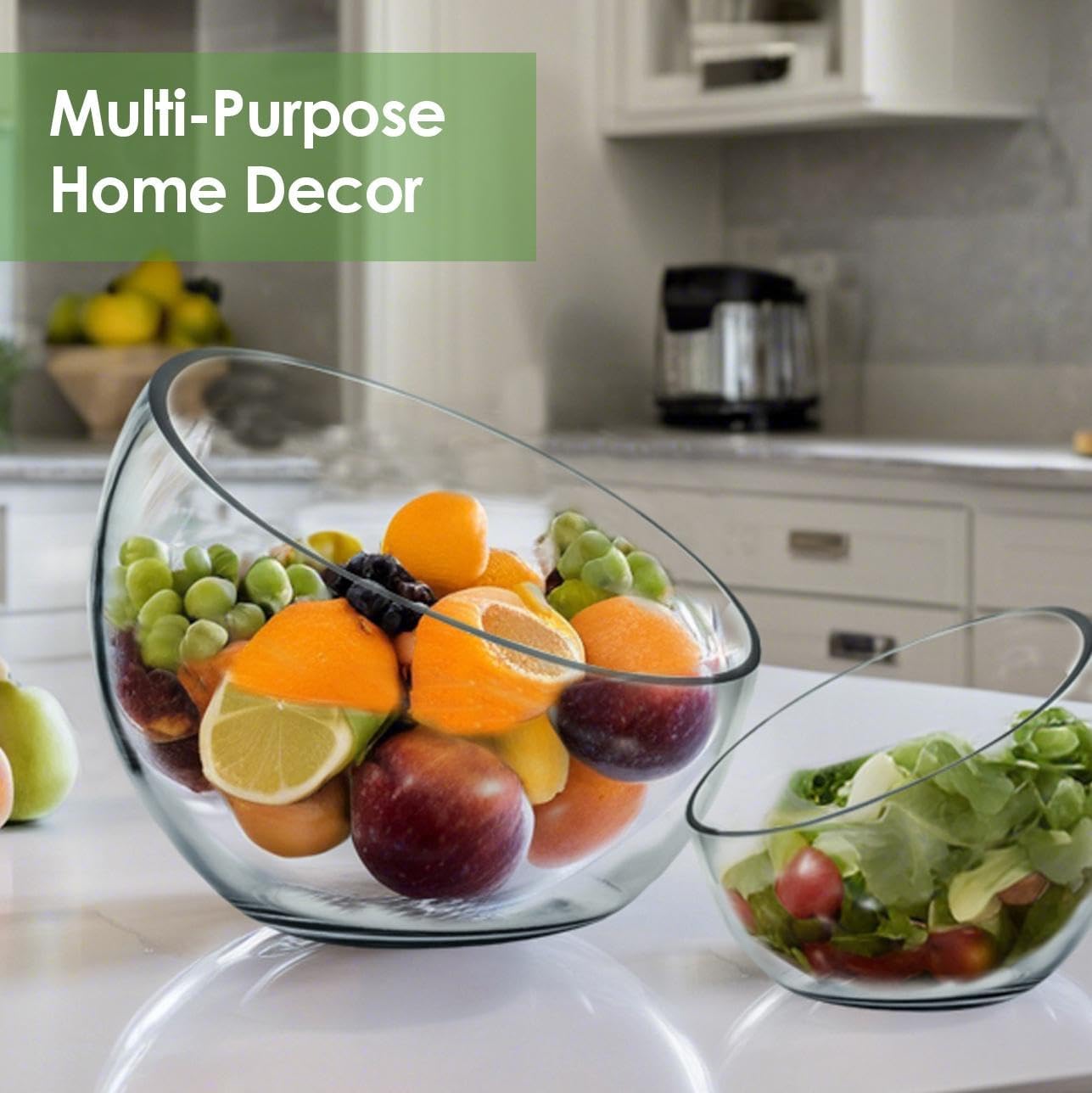 Craft And Party, Slant Cut Bowl Glass Vase, Glass Fish Bowl Vase, 8.5" Height x 10" Width Fruit Jar, Candy Dish, Clear Terraium, Flower Vase Centerpiece