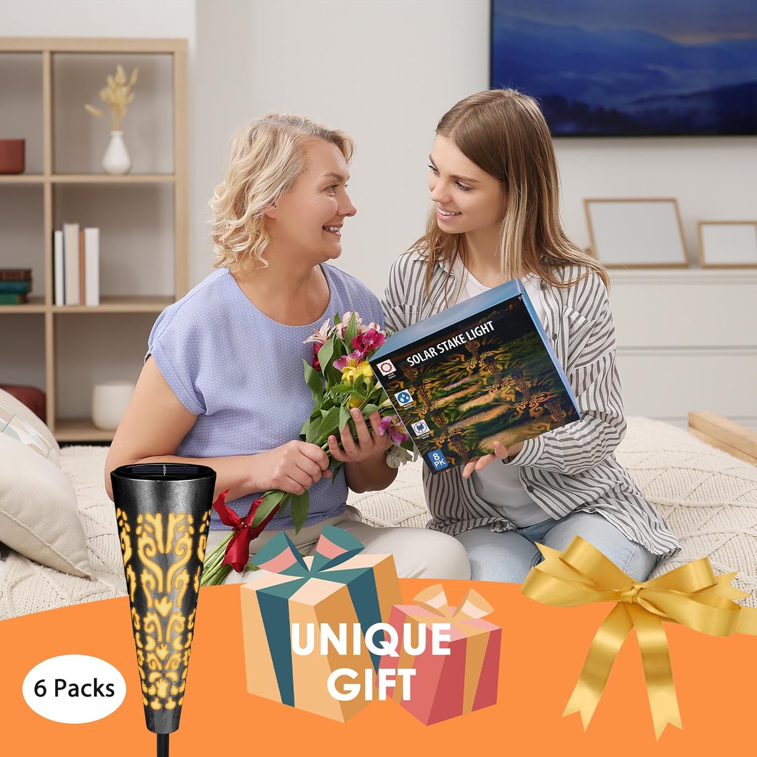pearlstar Solar Lights Outdoor Garden Decorative Pathway Lights Waterproof Unique LED Solar Stake Lights for Patio Yard Walkway Driveway Landscape Decor, Conical, Warm Lights, Black-6pack