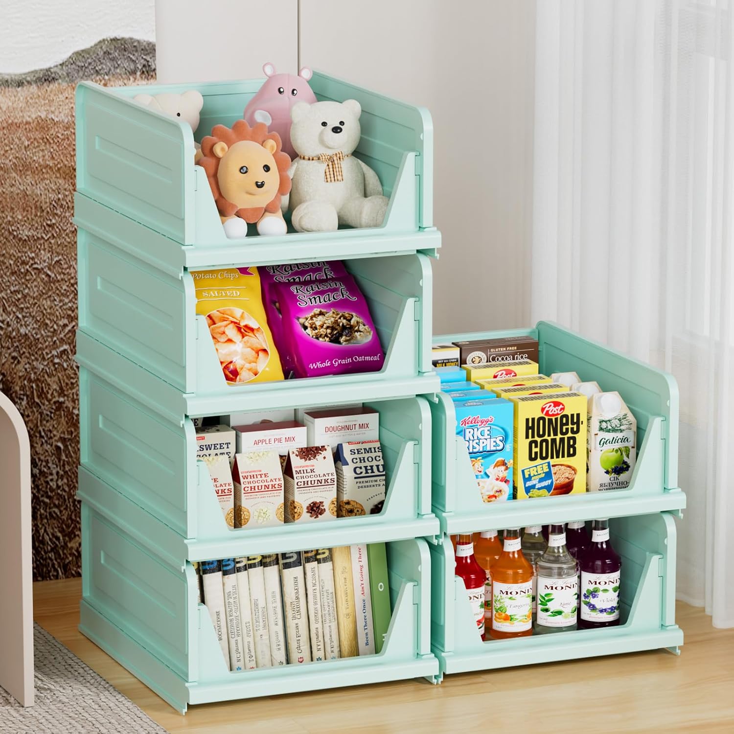 6 Pack Stackable Closet Storage Basket - Stackable Storage Bins, Multifunctional & Foldable Closet Organizer, Wardrobe Cupboard Space-Saving Hat Storage Drawer Organizer, Green