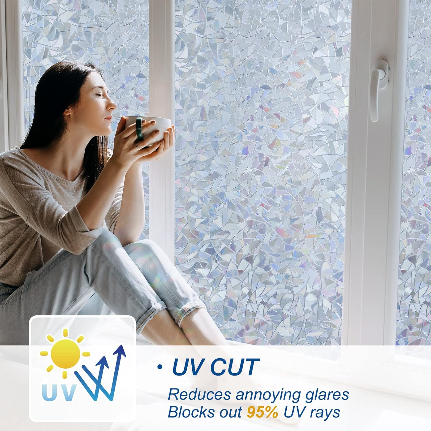 - No Glue: With no adhesive design, this static cling window film is easy to remove and re-use for multiple times. No worries about the films ruining your windows or messy sticky left after removing. It's perfect for a rented home, replaces expensive curtains, blinds. Besides, this window sticker is made of vinyl material that free of toxic chemical release and creates a safe home for you