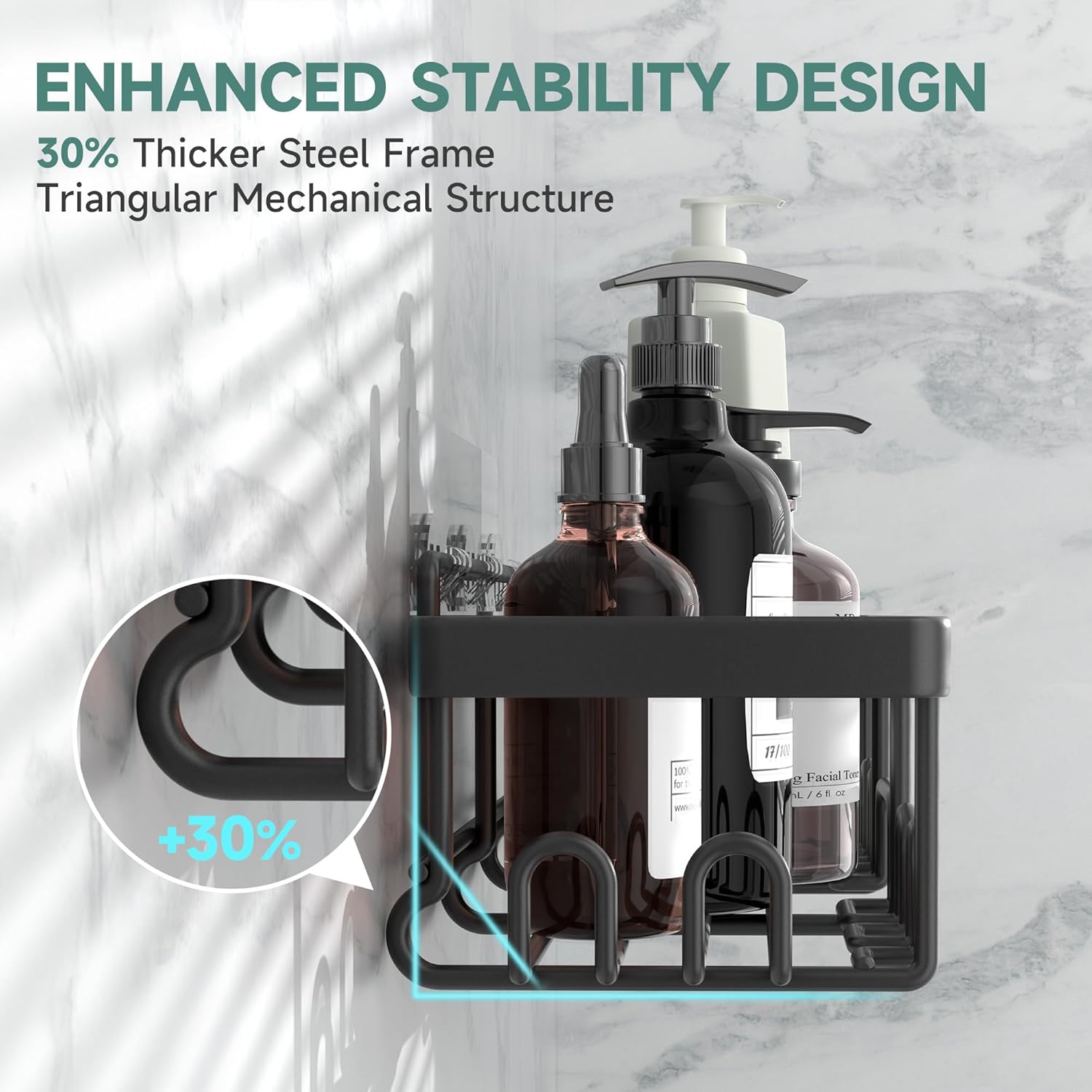 - Waterproof & Rust-Resistant: Designed for use in high-moisture areas, this caddy is made from rustproof and waterproof materials. It resists corrosion over time, keeping your shower organization solution looking pristine in damp environments.
