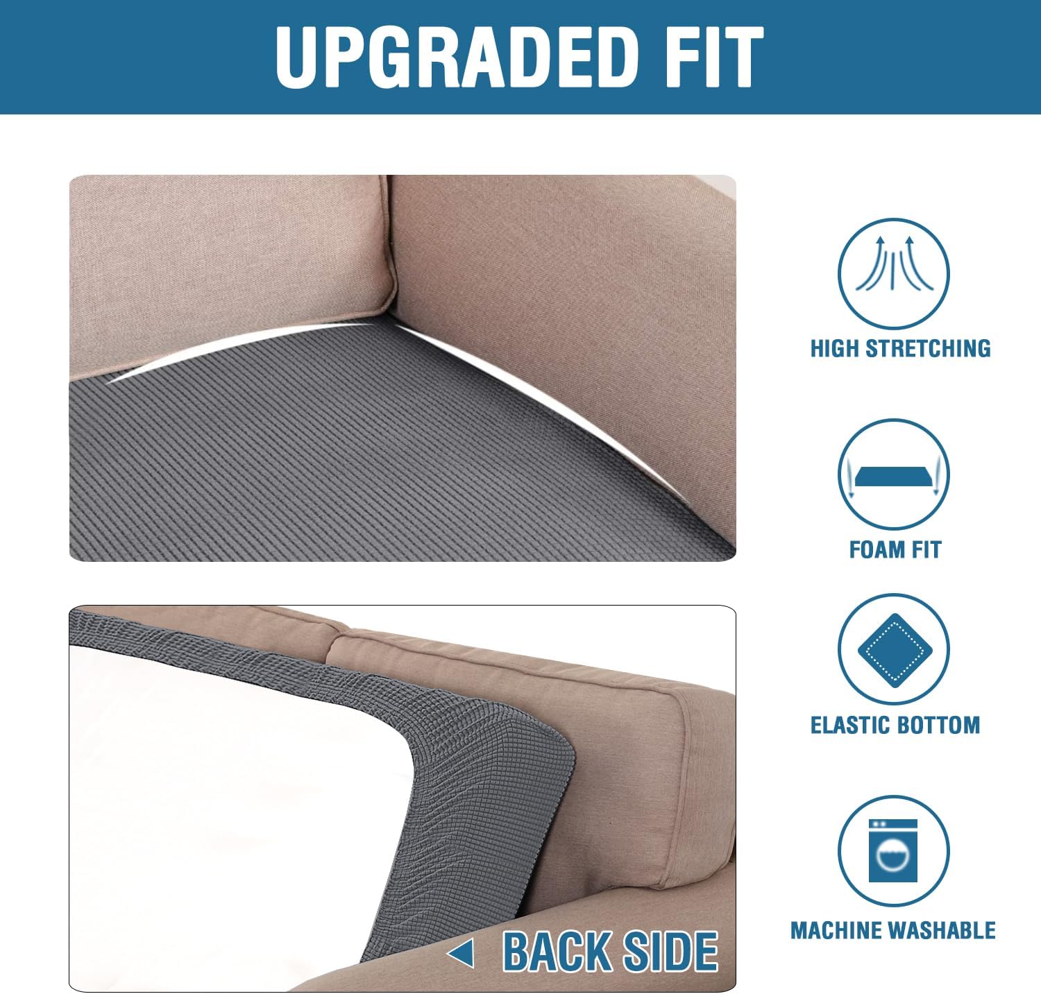 H.VERSAILTEX Super Stretch Individual Seat Cushion Covers Sofa Covers Couch Cushion Covers Slipcover Sets Thick Jacquard Textured Twill Fabric (1 Piece Sofa Cushion Cover, Grey)