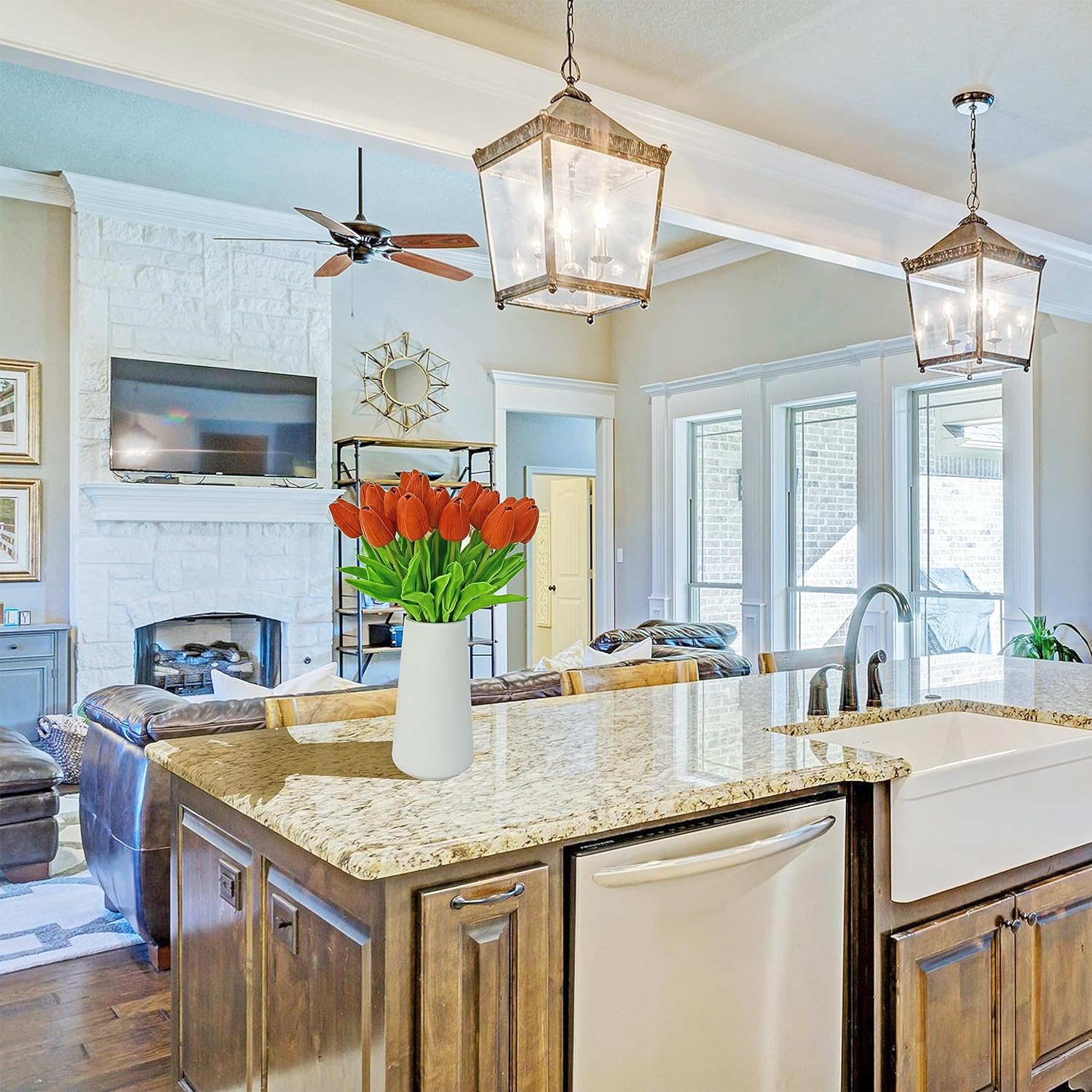 Mandy's Artificial Tulips 20 Stems Dark Orange PU Faux Flowers for Wedding Home Decor 13.5 Inch