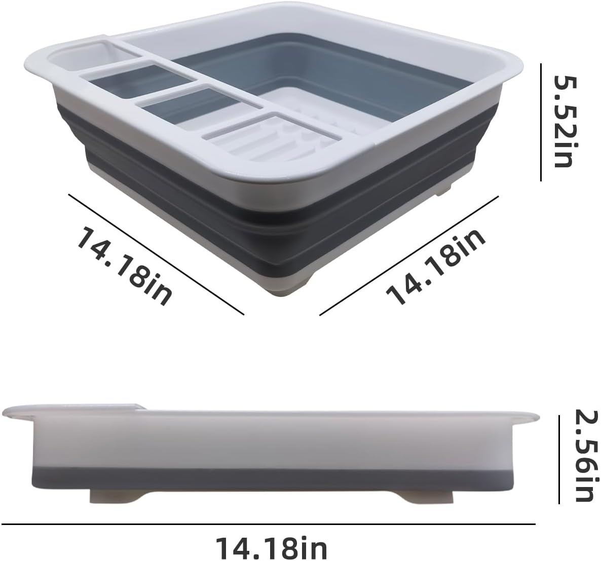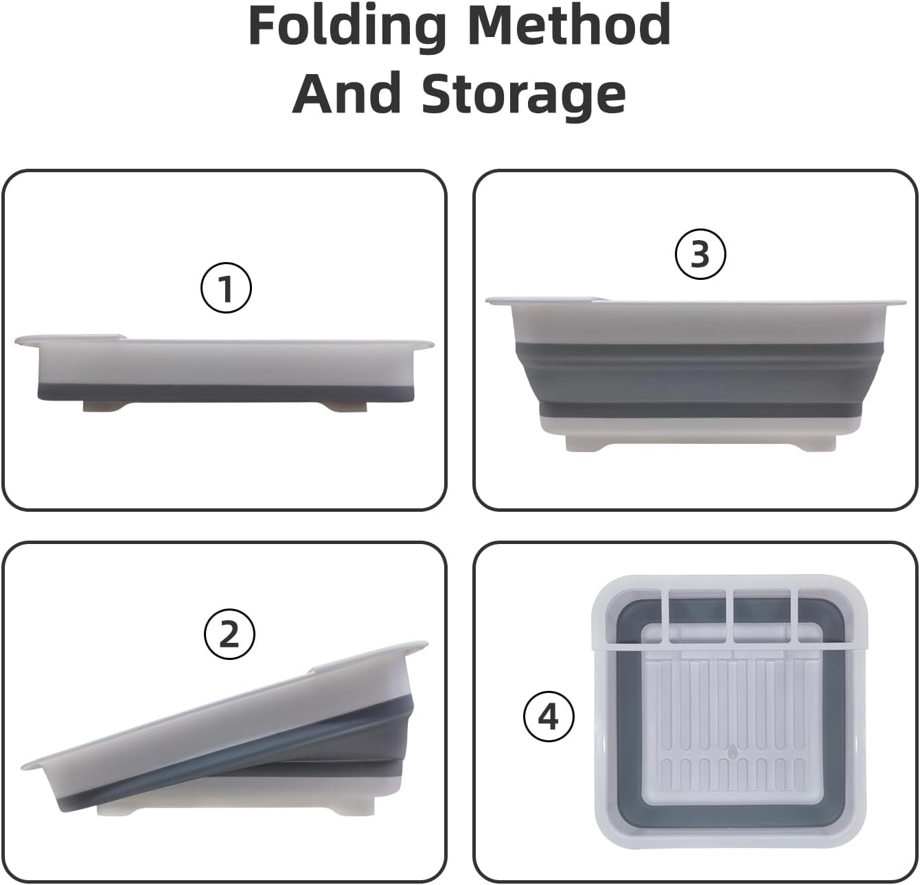 - 【Compact and Portable】The collapsible dish drainer is simply pop-up to open when using and collapses to flat for space-saving storage, you can easily store it under the sink or slip it into any cabinet. Suitable for both indoors & outdoors uses, such as camping, BBQ, RV and boats, campsite cleanup, and vacation homes, etc.