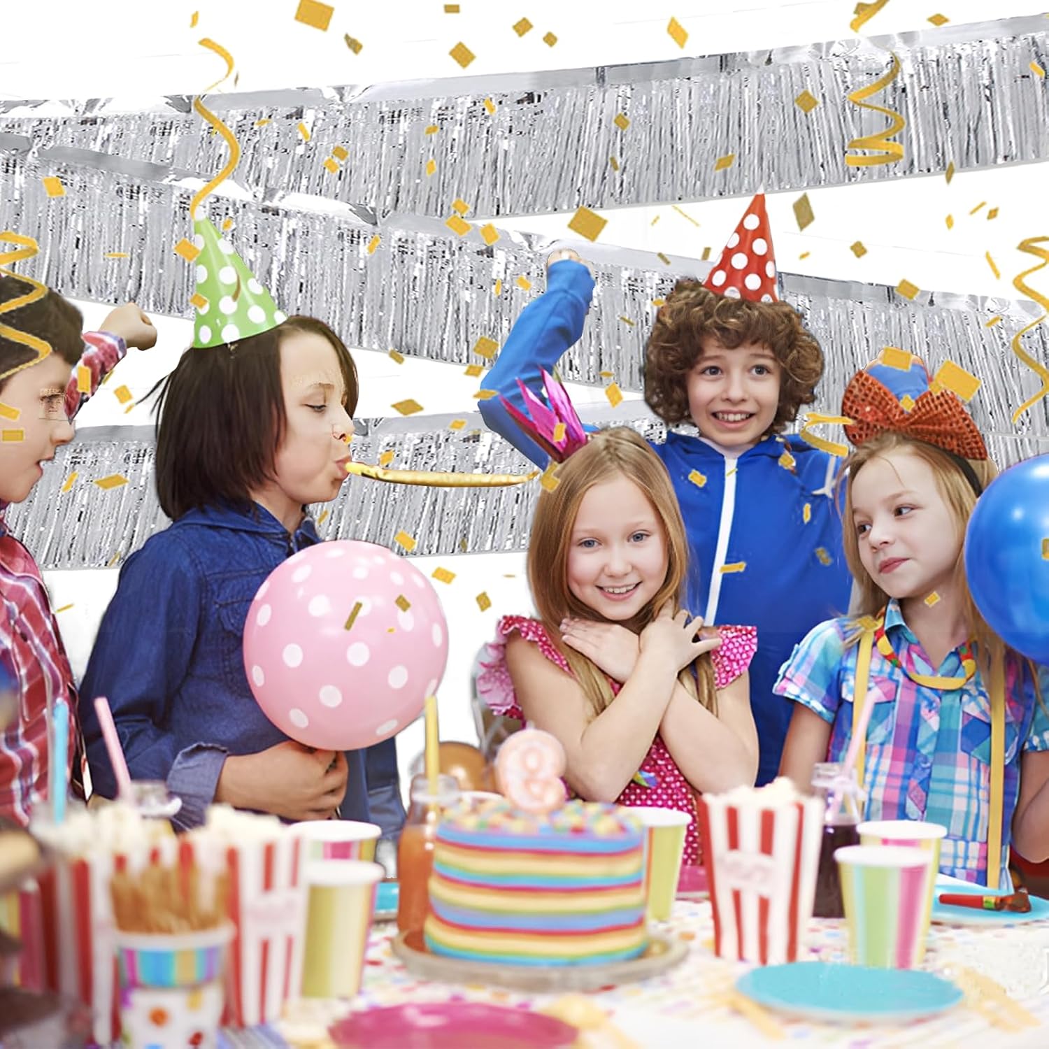 Silver Foil Fringe Garland 10FT 2packs, Metallic Foil Tinsel Fringe Banners for Parade Float Decorations Wedding, Birthday Party Graduation (Two Silver)