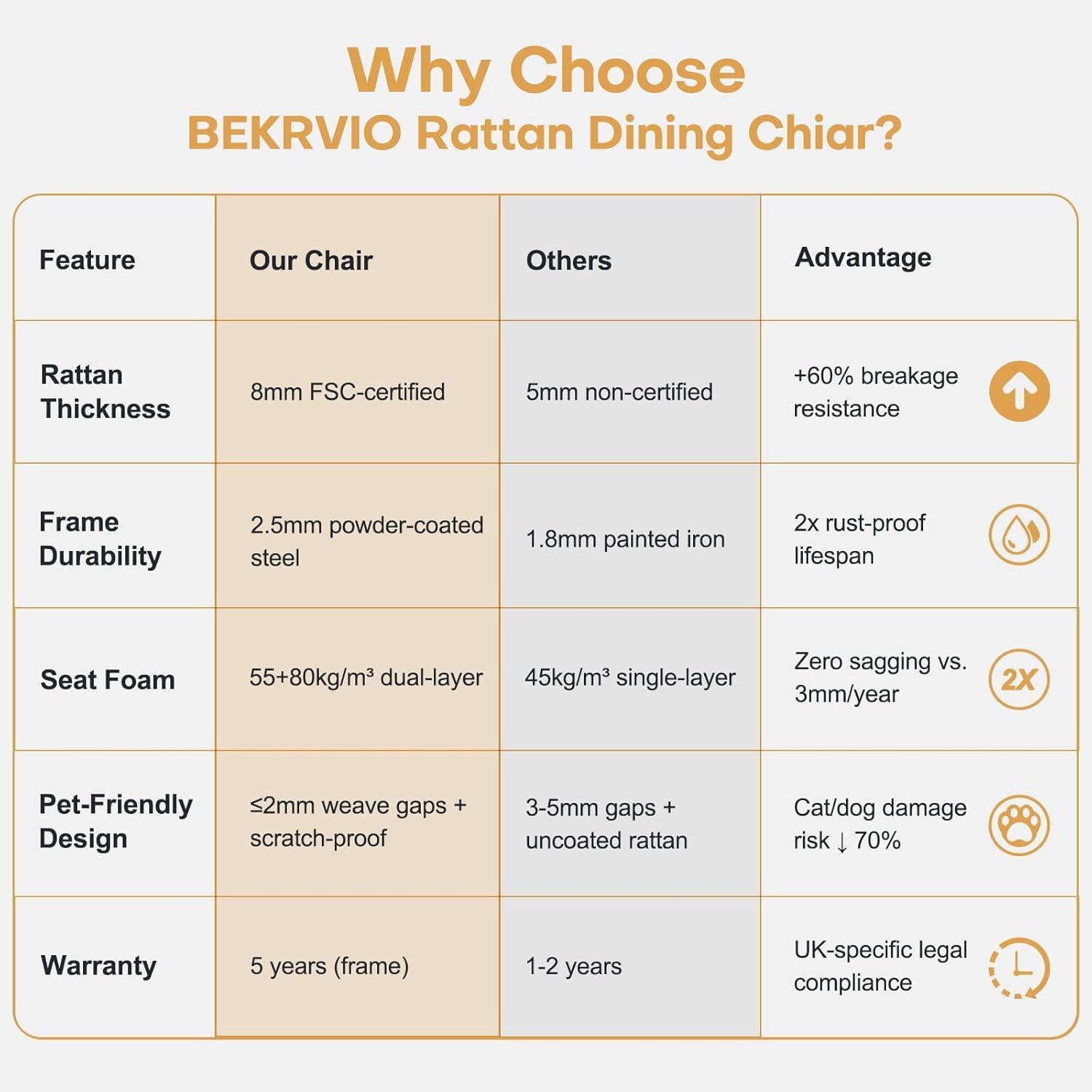 - 【Ergonomic Curved Backrest and Sturdy Frame】: The handcrafted hexagonal mesh fabric adds an elegant touch and showcases fine workmanship, while the woven rattan backrest provides comfort and breathability. With a full backrest design, the rattan chair provides ergonomic body support. A reinforced iron frame ensures strong load-bearing capacity and structural stability. It can support 300 pounds of weight. Each chair also has 4 adjustable feet, which make leveling uneven surfaces easy.