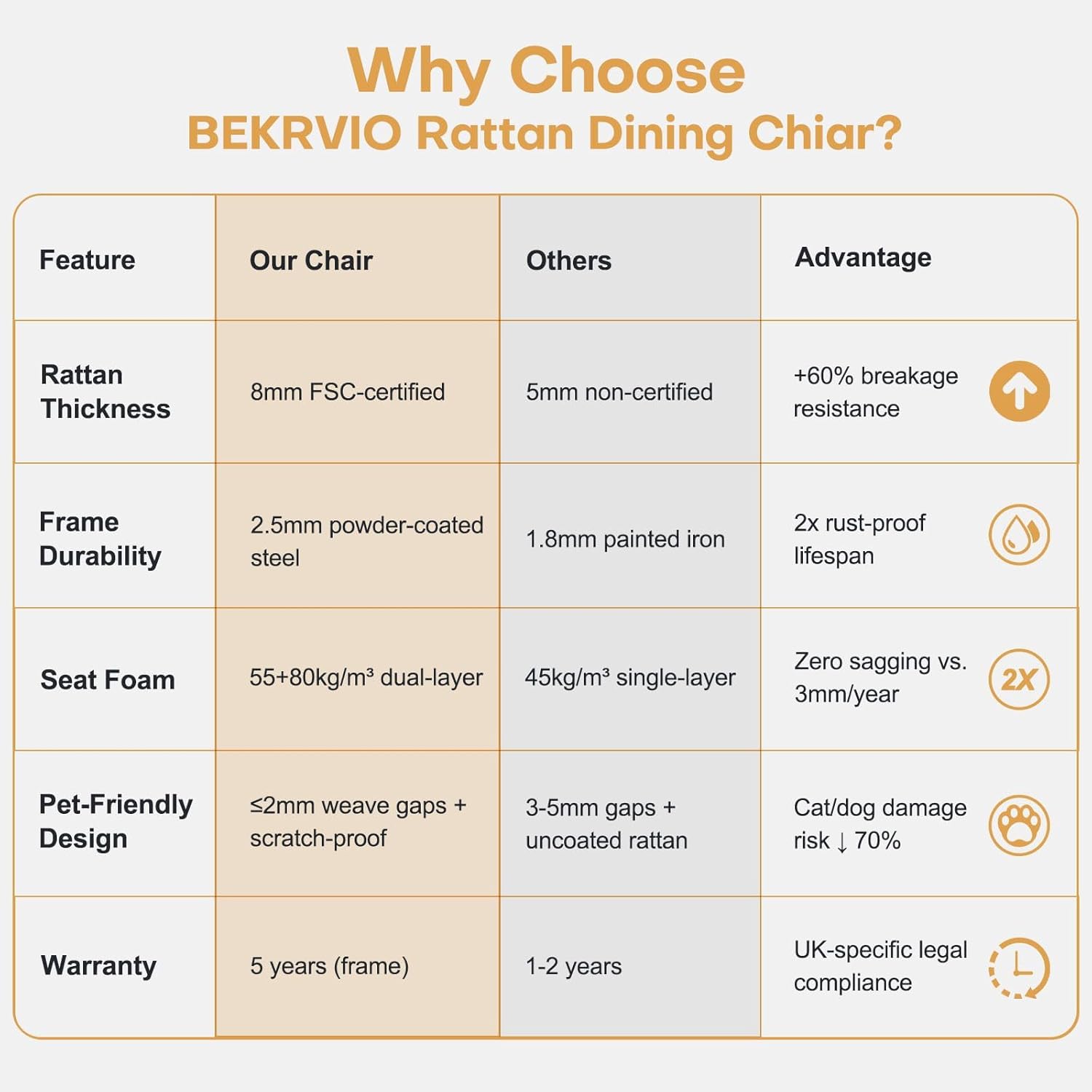 - 【Perfect Size & Comfortable Seat】: These dining chairs feature seat dimensions of 17.7"(D)*18.9"(W) and a seat height of 19.3"(H). The backrest measures 18.9"(W)*15.2"(H), with an overall height of 31.1"(H). The kitchen chairs are upholstered in Boucle fabric, which has the appearance of loop yarn particles and is known for its excellent texture. Its high-resilience sponge seat prevents sagging and maintains its shape over time, ensuring long-term comfort and durability.